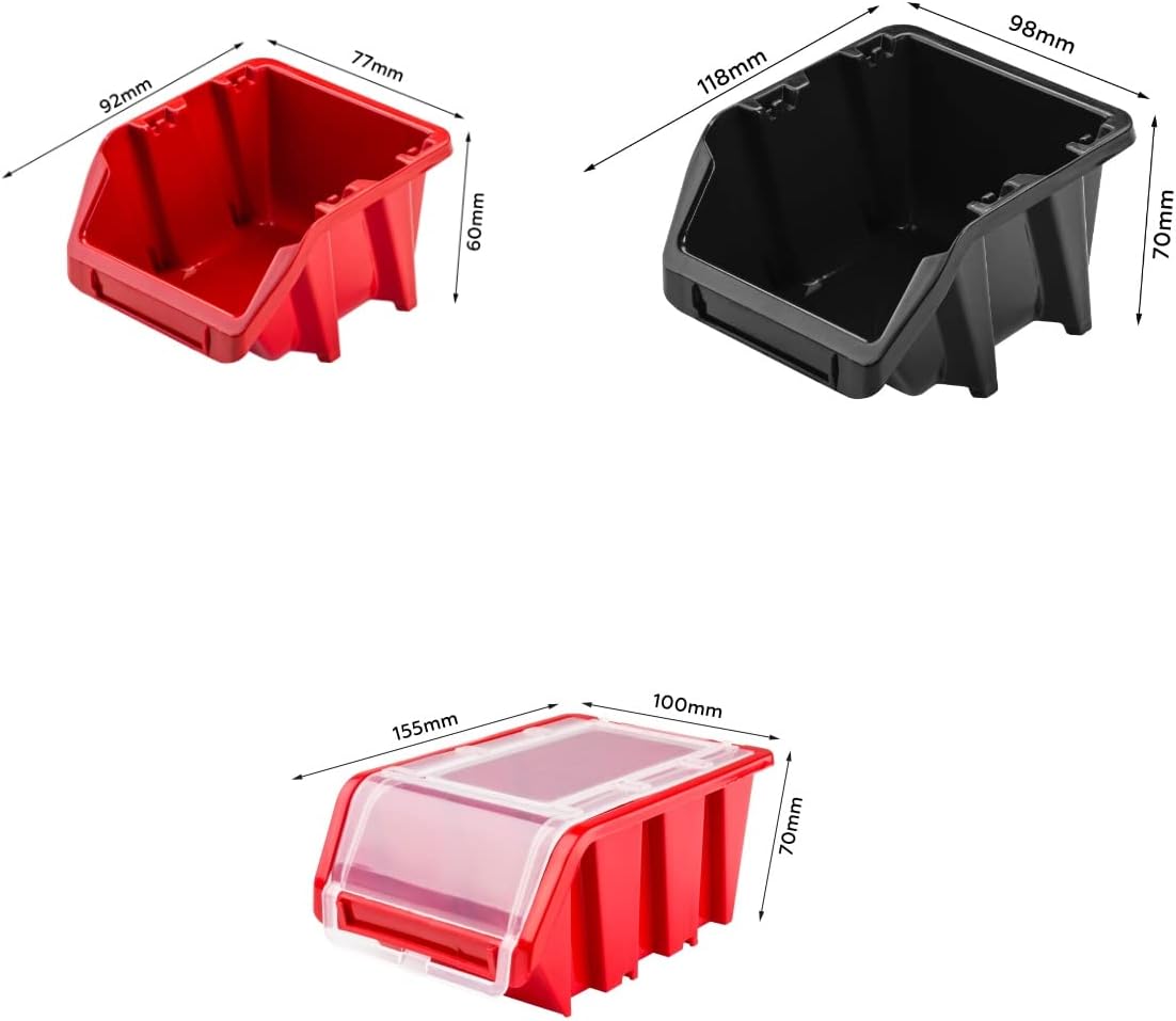 Lagersystem Werkstattregal | 172 x 78 cm | 56 stck. Box | Wandregal mit Werkzeughalterungen und Stap