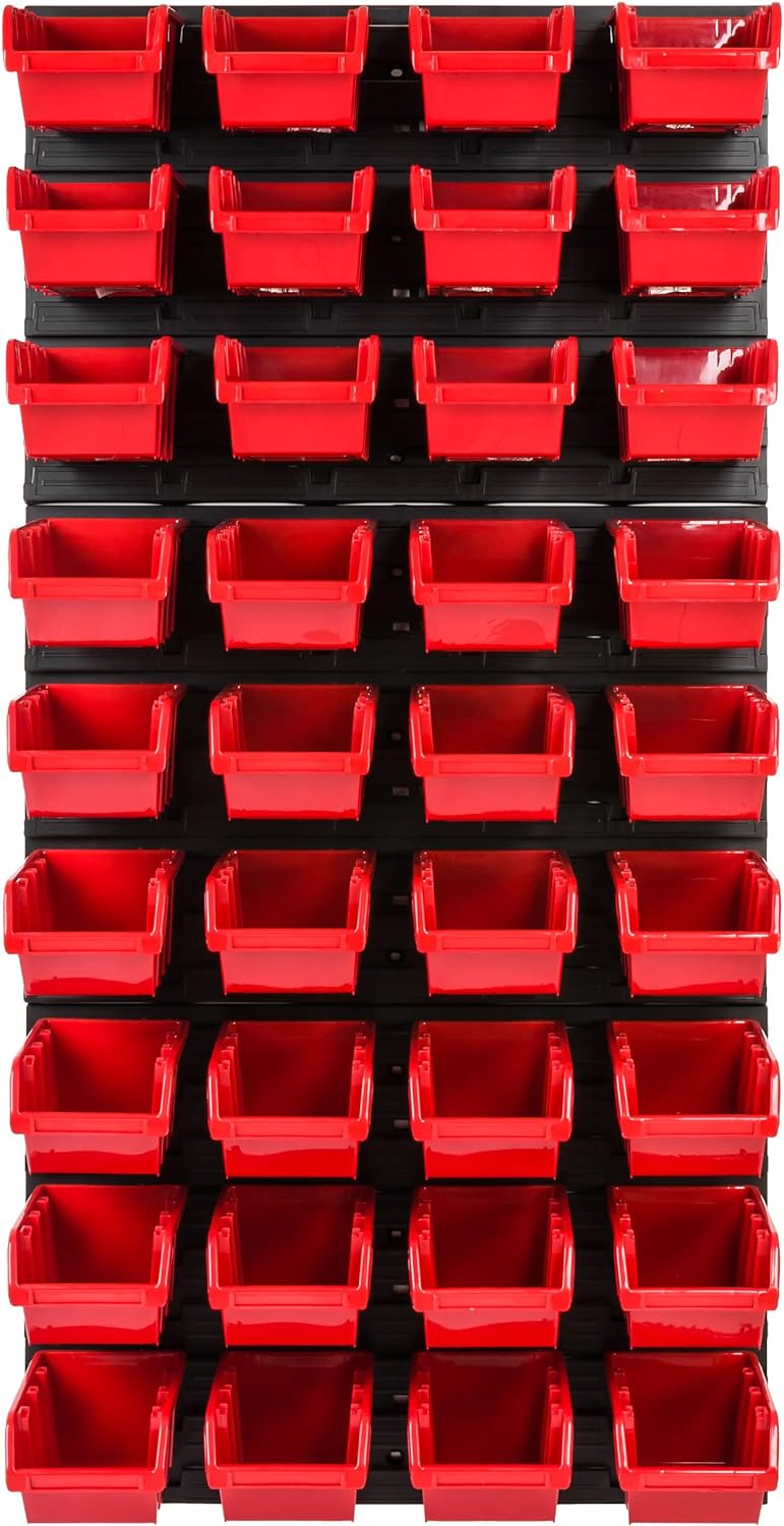 Lagersystem Werkstattregal | 57 x 116 cm | 36 stck. Box | Wandregal mit Stapelboxen - Wandplatten Ex