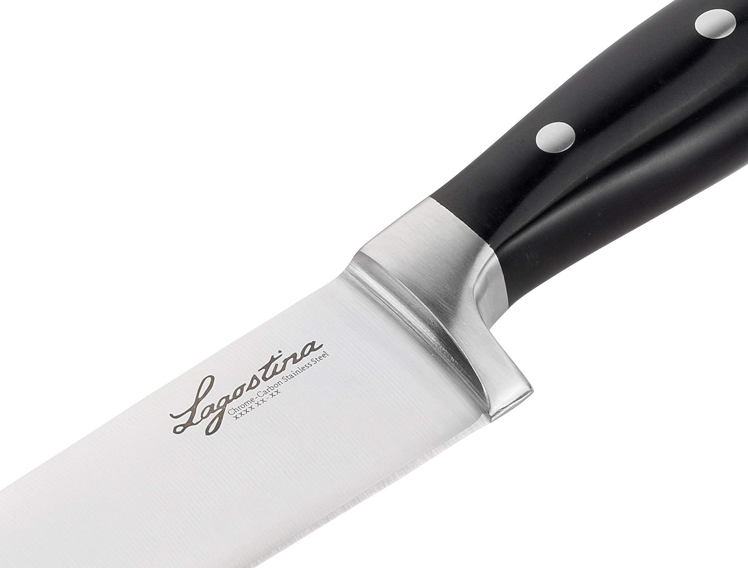 - Geschmiedete Klinge: Die Klingen der Lagostin-Messer sind aus geschmiedetem Stahl für eine optimale Leistung in der Küche hergestellt