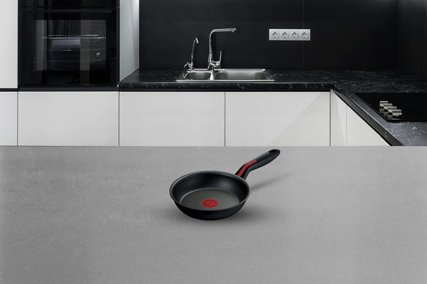 - Wärmeanzeige: Die Thermosignal-Anzeige in der Mitte der Pfanne ändert die Farbe, wenn die richtige Temperatur erreicht ist, um mit dem Kochen zu beginnen, für Rezepte immer punktgenau gekocht