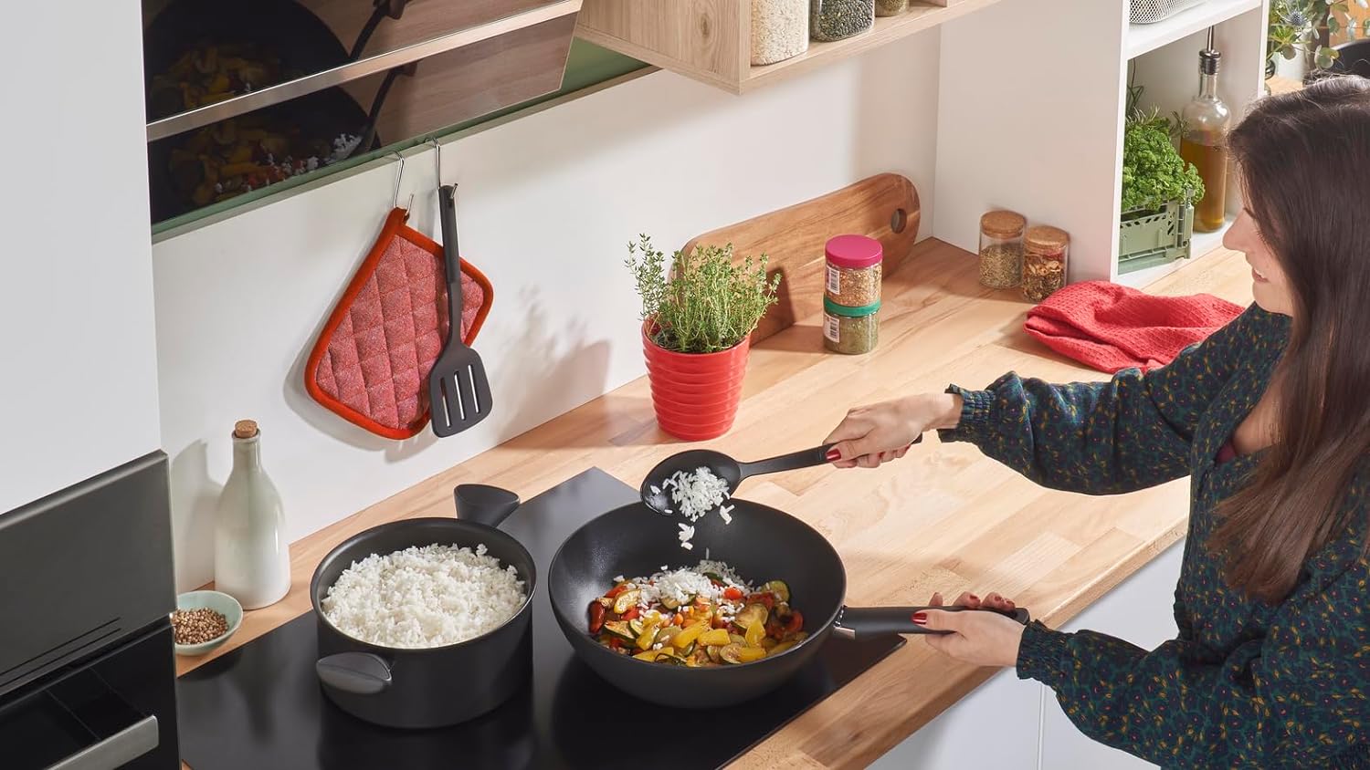 • Für Induktions-, Gas- und Backofen: Der formstabile Boden aus Edelstahl und Aluminium, der 4 mm dick ist, lässt die Hitze schnell und gleichmässig verteilen; geeignet für alle Herdarten, einschliesslich Induktion, und backofenfest bis 175 °C