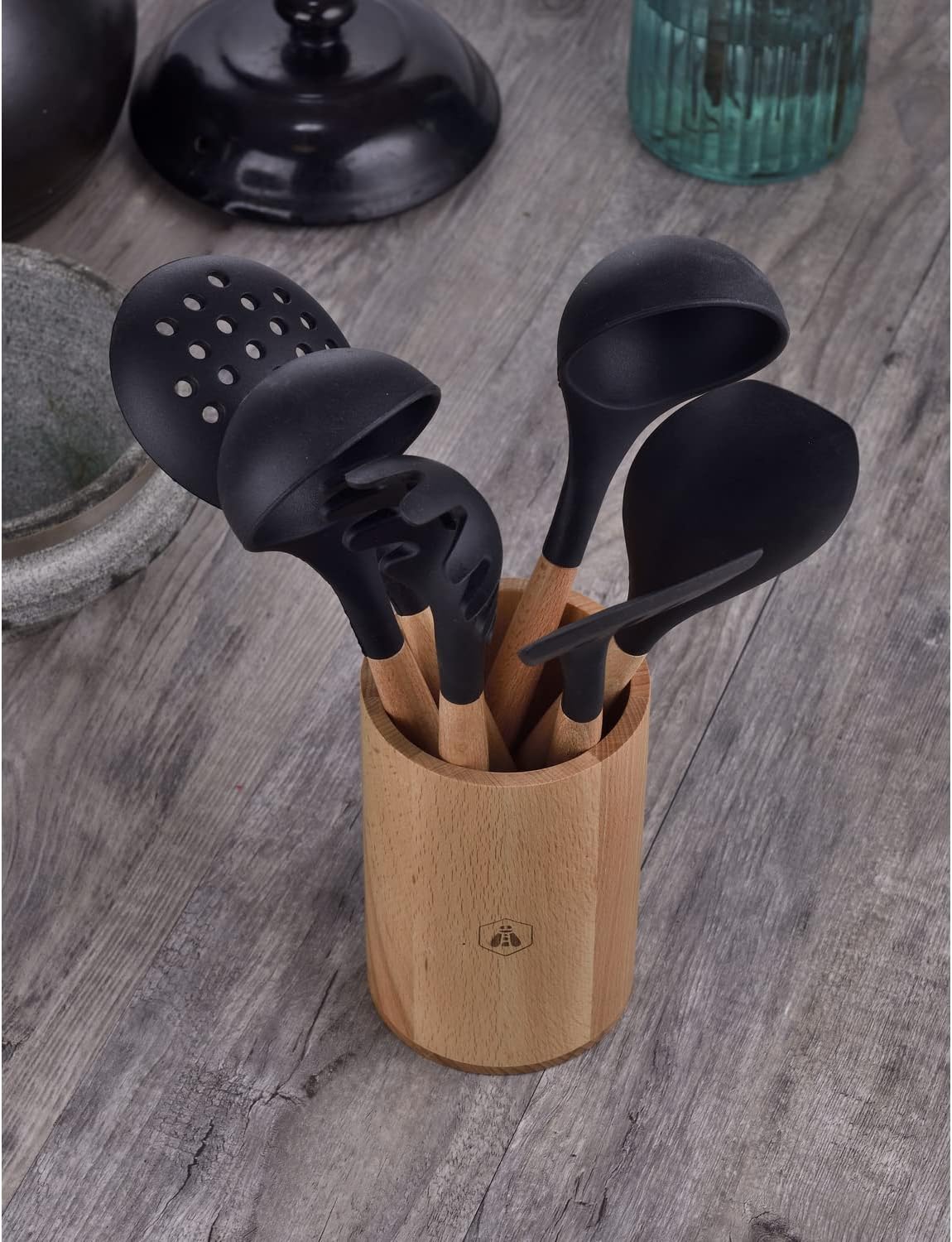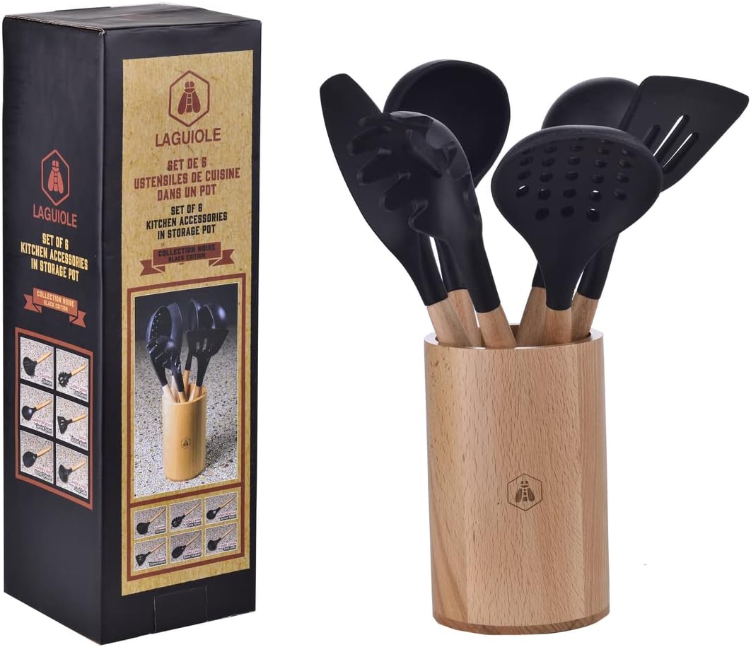 - ESSENTIAL SET: Laguiole Silikonutensilien beinhalten: Schöpfkelle, Bratpinsel, Spaghetti-Löffel, Bratlöffel, Saucenlöffel, Schaumlöffel und Vorratsglas. Mit unseren Silikonutensilien haben Sie alles, was Sie zum Servieren und Bewirten brauchen.