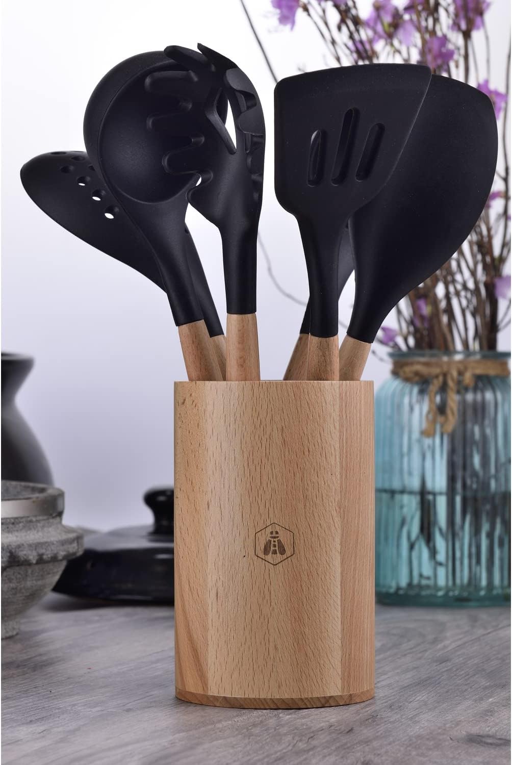 - SUPERIOR QUALITY MADE DURING: Hergestellt aus zwei Materialien: Holzgriff (Anti-Scorch) + hochwertiges Silikon.100% lebensmittelecht, gesund, Antihaft, umweltfreundlich ohne Geruch, gesünderes Kochen und weniger Reinigung erforderlich.Sie können sich