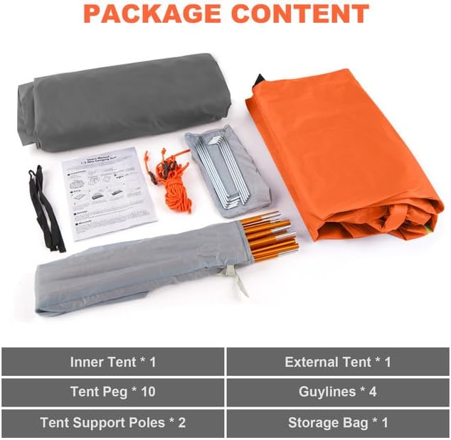 • ⛺【Doppeltür-Design】Das ultraleichte Zelt ist für einfachen Zugang mit zwei Doppelreissverschlusstüren entworfen. Das Innenzelt ist mit Aufbewahrungstasche und Haken ausgestattet, in der Aufbewahrungstasche können Handys, Taschentücher und