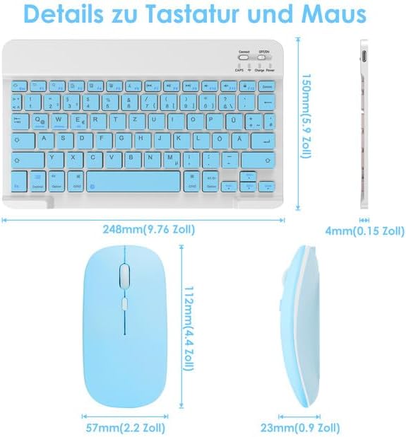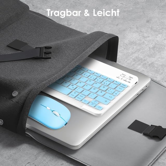- 👜【Ultradünn & Leicht】Die iPad Tastatur misst 24,8 x 15 x 0,6 cm (9,7 x 5,9 x 0,2 Zoll) und wiegt 185 g. Dank des ultradünnen und superleichten Designs können Sie sie in einen Rucksack, eine Computertasche oder einen Koffer stecken und