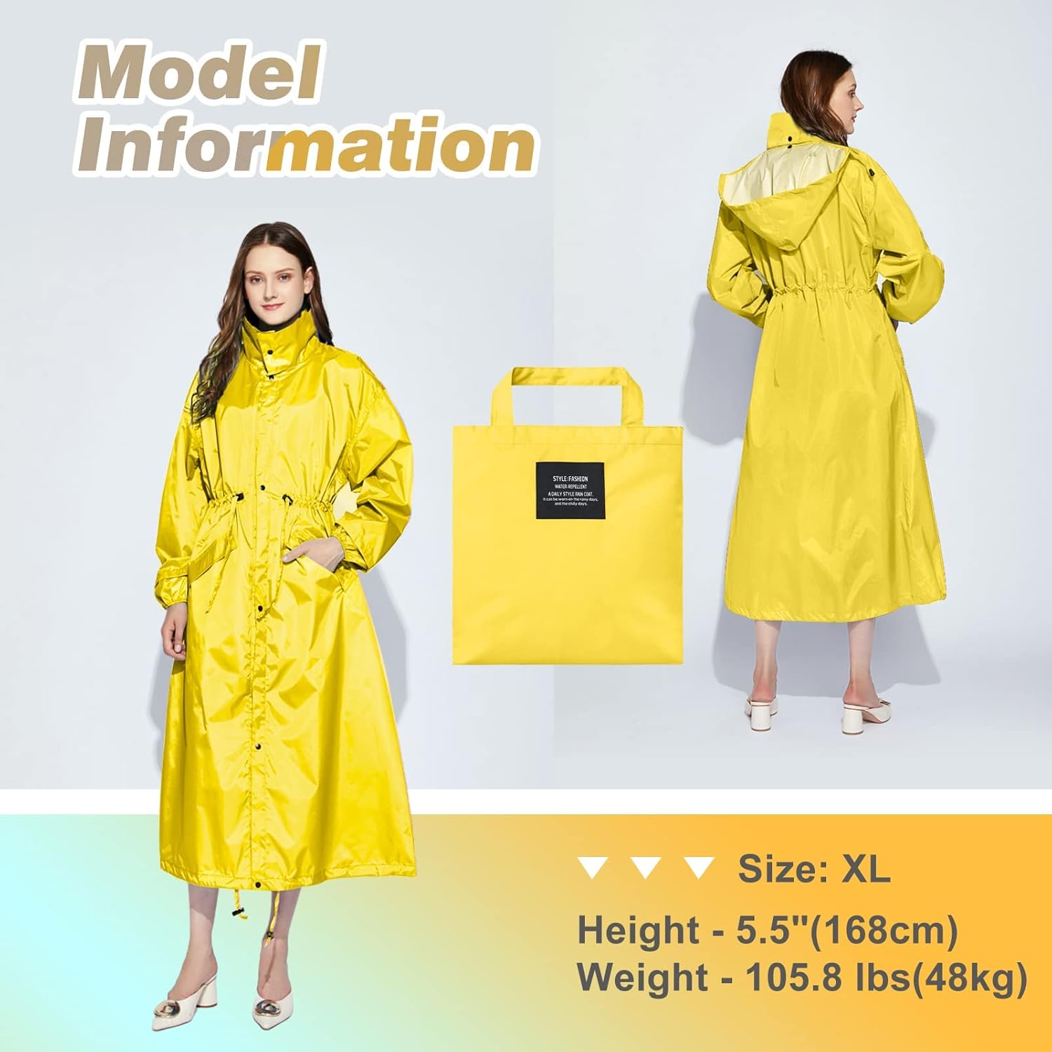 - đžăModisches und elegantes DesignăDieser Regenmantel ist modischer und eleganter als normale RegenmĂ€ntel, mit einer Vielzahl von Farben zur freien Wahl. An der Kapuze und an der Taille befinden sich KordelzĂŒge. Durch das Kordelzugdesign des