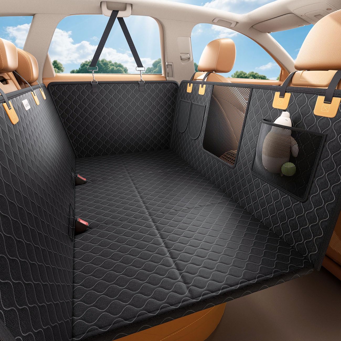 - 【Wasserdicht & Leicht zu Reinigen】Die Hundematte Auto Rückbank besteht aus 7 Schichten hochwertiger Materialien. Die Oberfläche aus 600D Oxford-Gewebe besteht, der kratzfest & wischbar ist. Die erste Wasserschicht und das PVC bilden eine doppelte