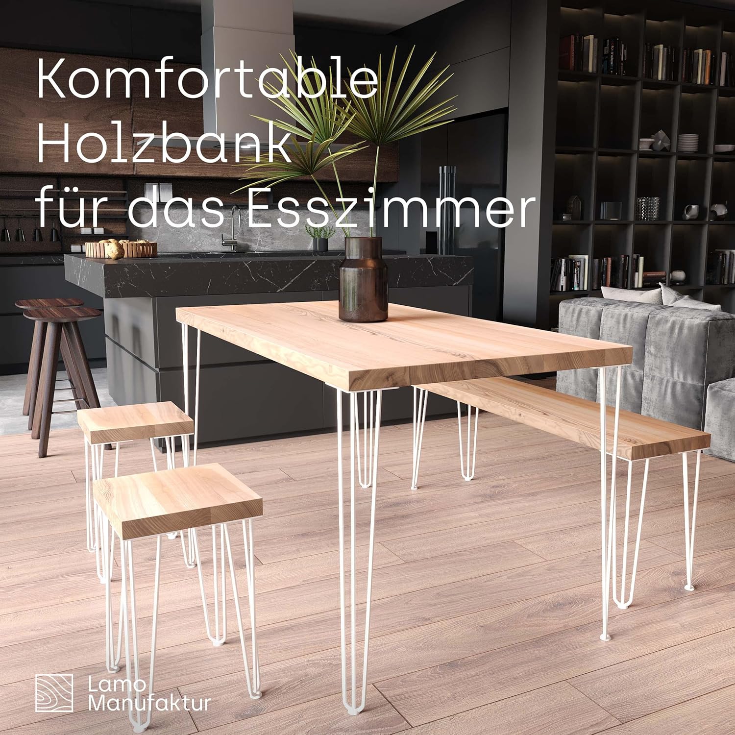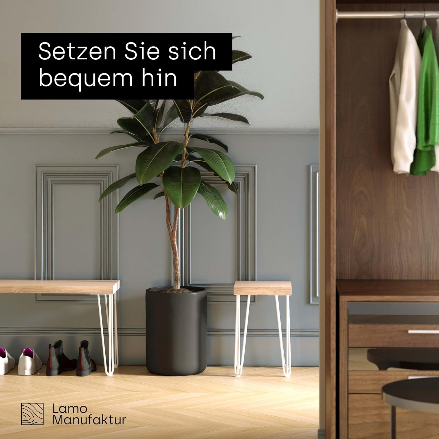 - FUNKTIONALITÄT MIT STIL: zeitlose Sitzbank für den Flur – Masse: 30x60x47cm – gefertigt aus Massivholz – Möbelfüsse aus Stahl, weiss pulverbeschichtet – als Sitzbank für Esszimmer, Schlafzimmer, Flur oder Balkon bestens geeignet