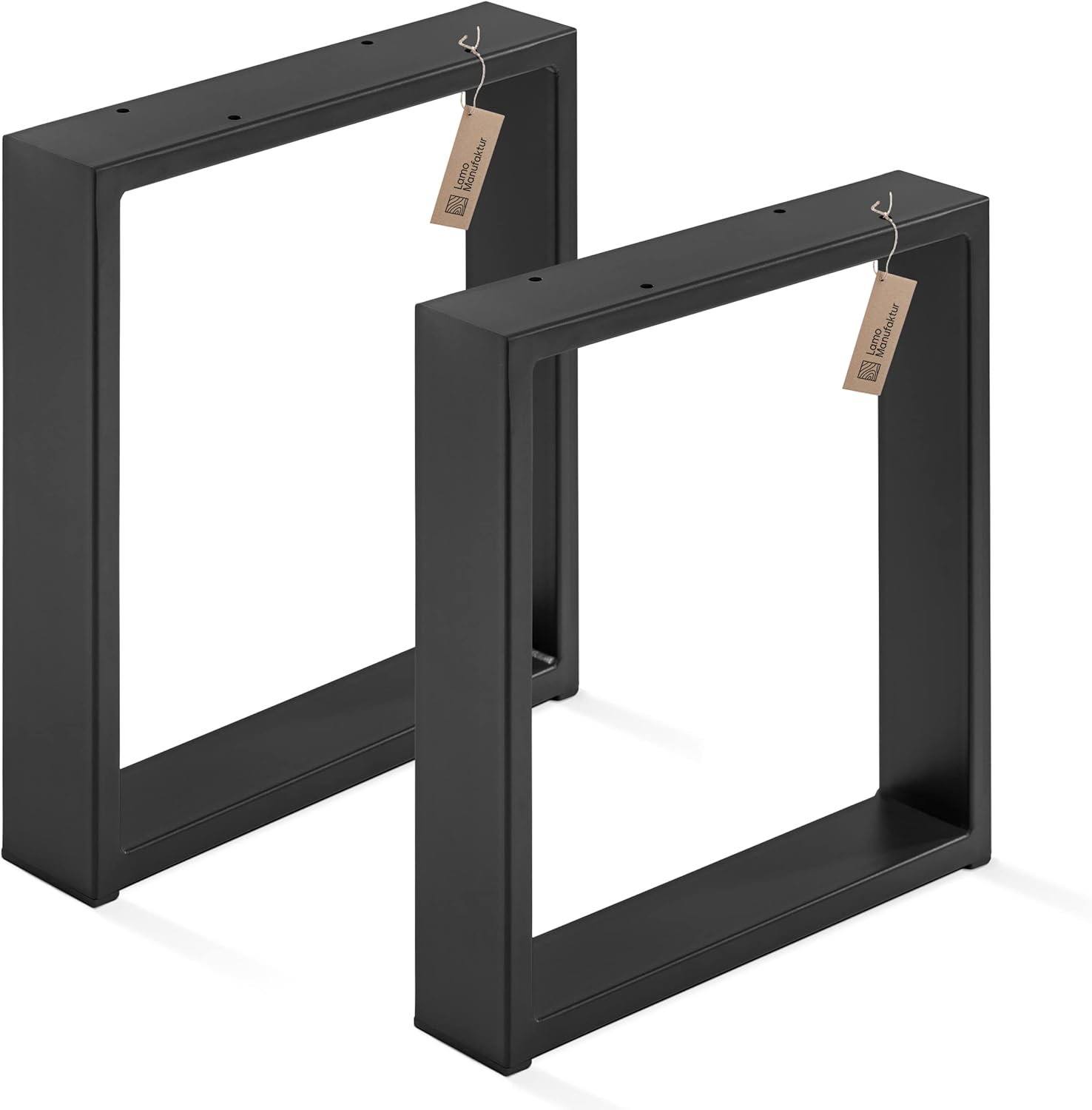 • Tischbeine 2er-Set: extrem stabil und belastbar - Masse: 40x43 cm (B x H) - als Möbelfüsse für Sitzbank, Couchtisch, TV Board perfekt geeignet - handgefertigt in der EU aus erstklassigen Vierkantprofilen 60x20 mm - schwarz pulverbeschichtet (RAL 9005)