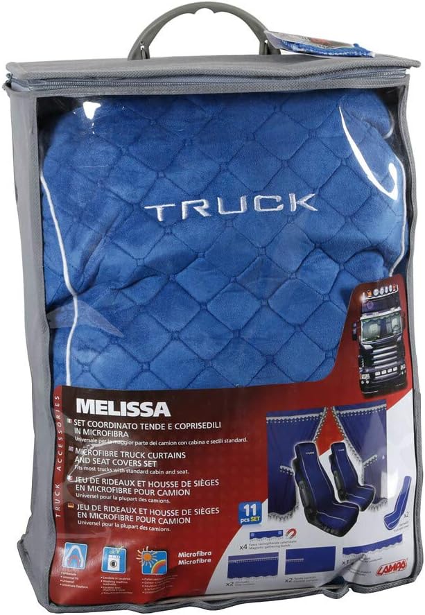 - Bestehend aus: 2 Sitzbezüge, 2 Vorhänge aus Glas, 2 Mittelvorhänge, 1 Sonnenblende, 4 magnetische Raffhalter, 90 Haken aus Kunststoff.