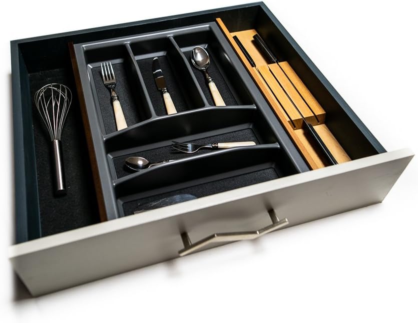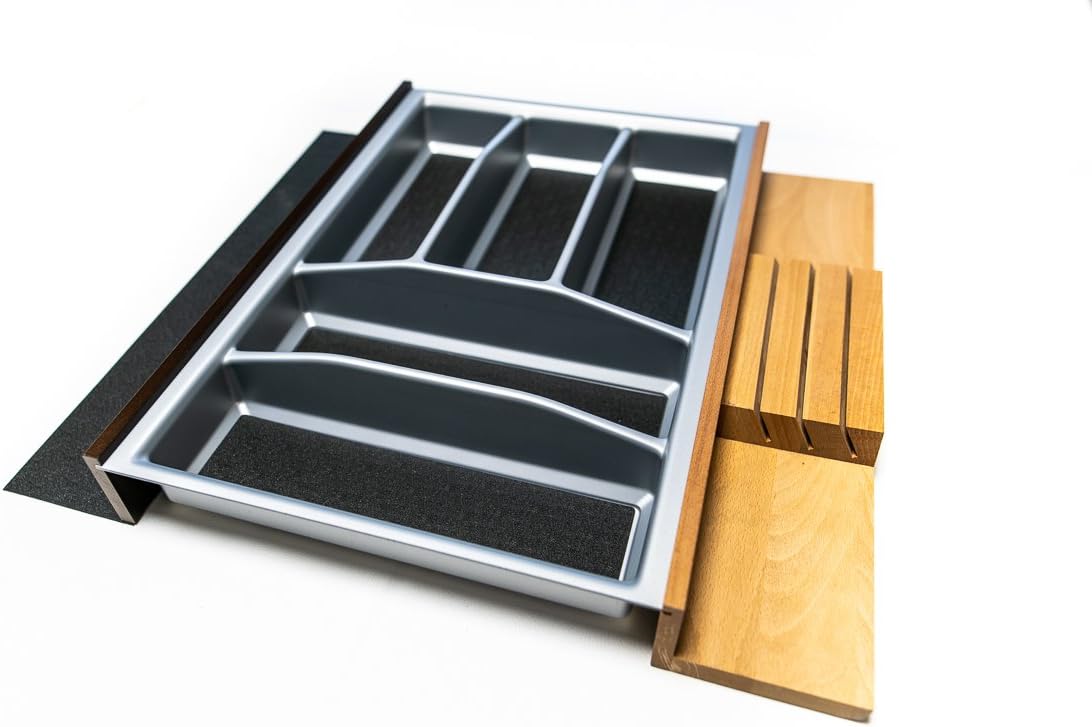 - Besteckeinsatz inkl. Antirutschboden, Messerblock, 1 x Echtholz Abschlussleiste (Dekoration nicht im Lieferumfang enthalten)