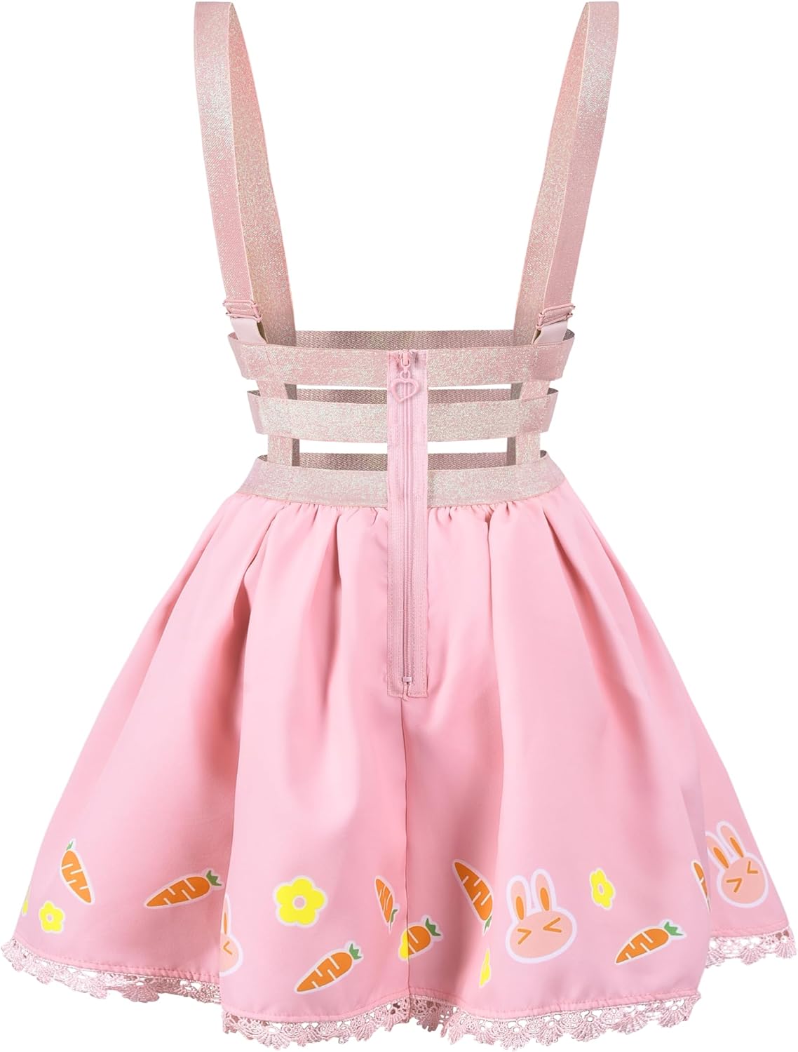 - Eigenschaft: Plissee Pullover Rock, mit Hasen themed Print Saum, weiches Schichtfutter, verstellbare Hosenträger Röcke, A-Linie Brace Rock mit mehreren dehnbaren Band an der Taille, rosa Rock mit hinterem Reissverschluss, die elastischen Riemen