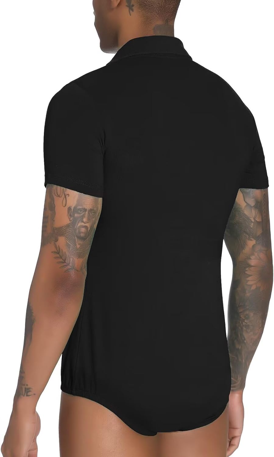 • Herren Kurzarm Strampler T-Shirt Pyjama Top, einteiliger Trikot Bodysuit Design, mit Druckknopf im Schritt, einfach an- oder ausziehen. Klassisches POLO Kragen Design, machen Sie energischer aussehen.