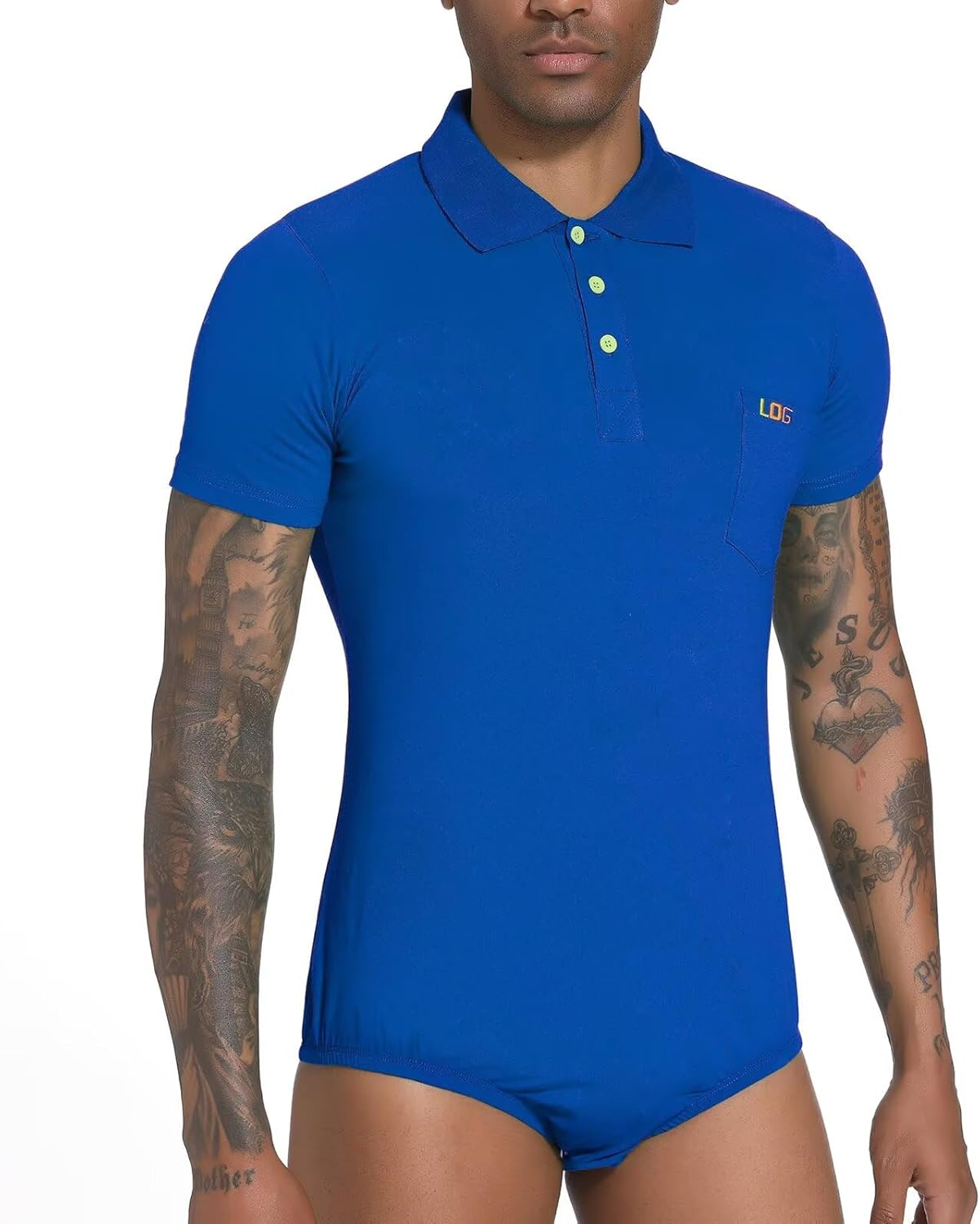 - Herren Kurzarm Strampler T-Shirt Pyjama Top, einteiliger Bodysuit Design, mit Druckknopf im Schritt, einfach an- oder ausziehen. Klassisches POLO Kragen Design, machen Sie energischer aussehen.