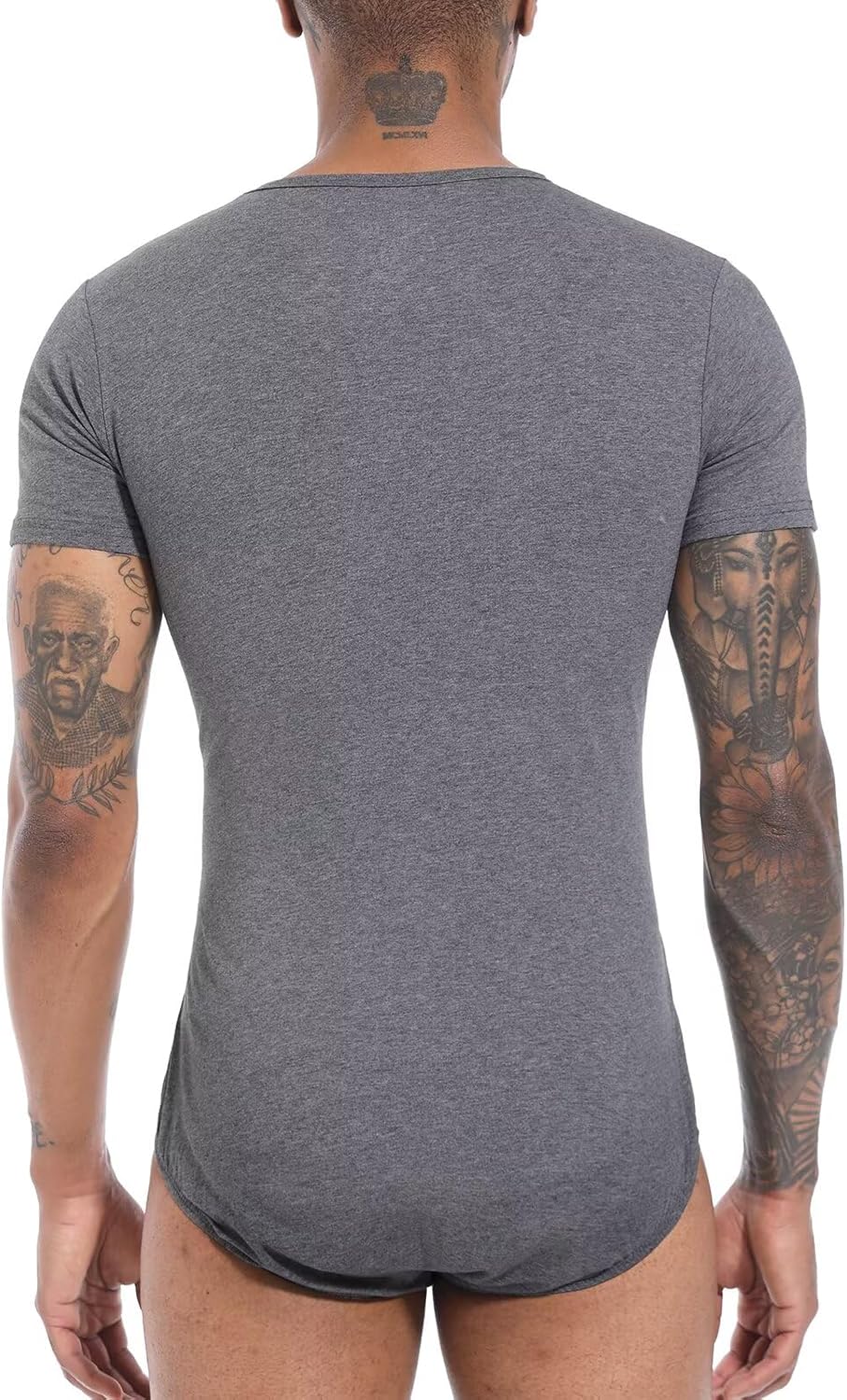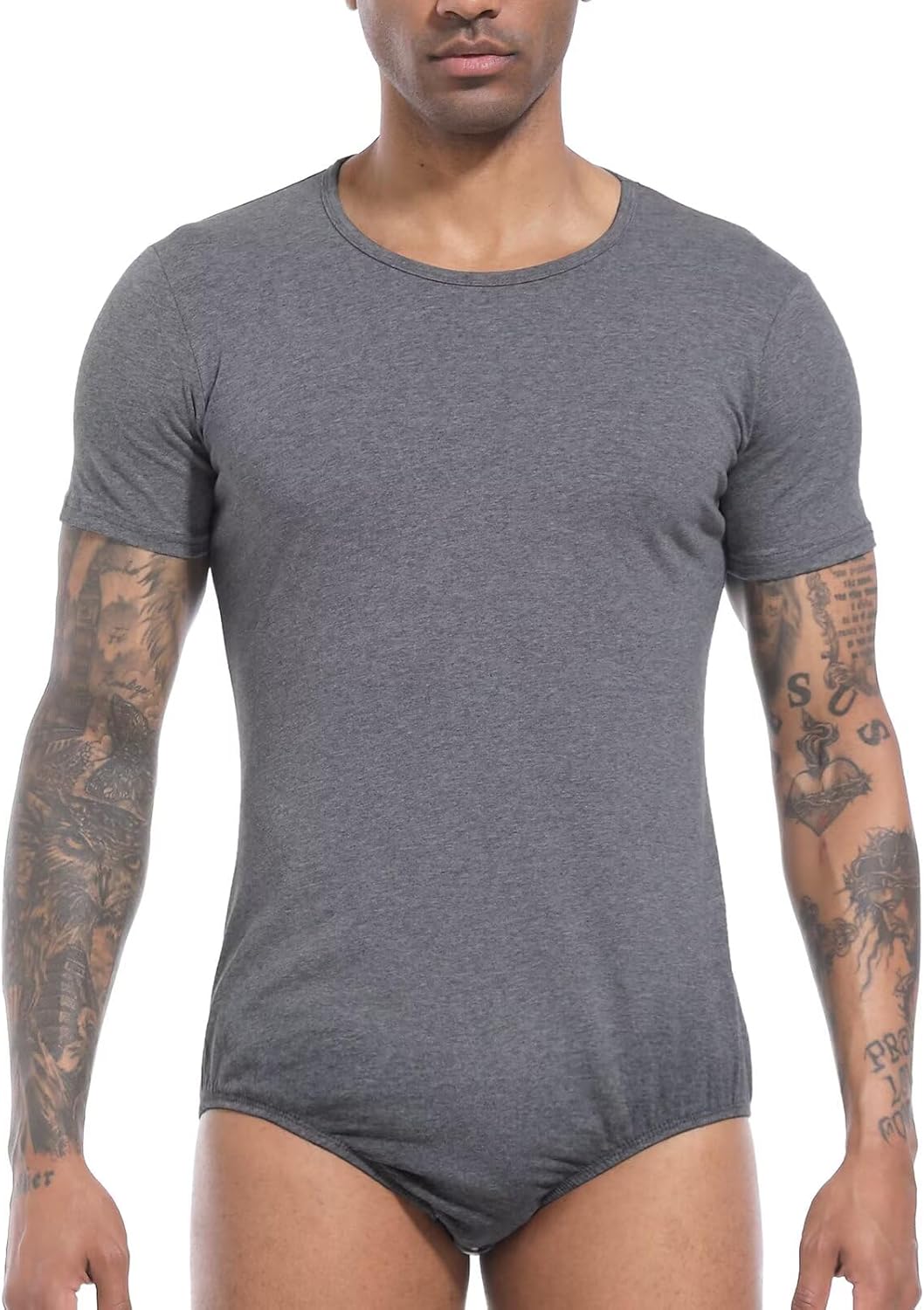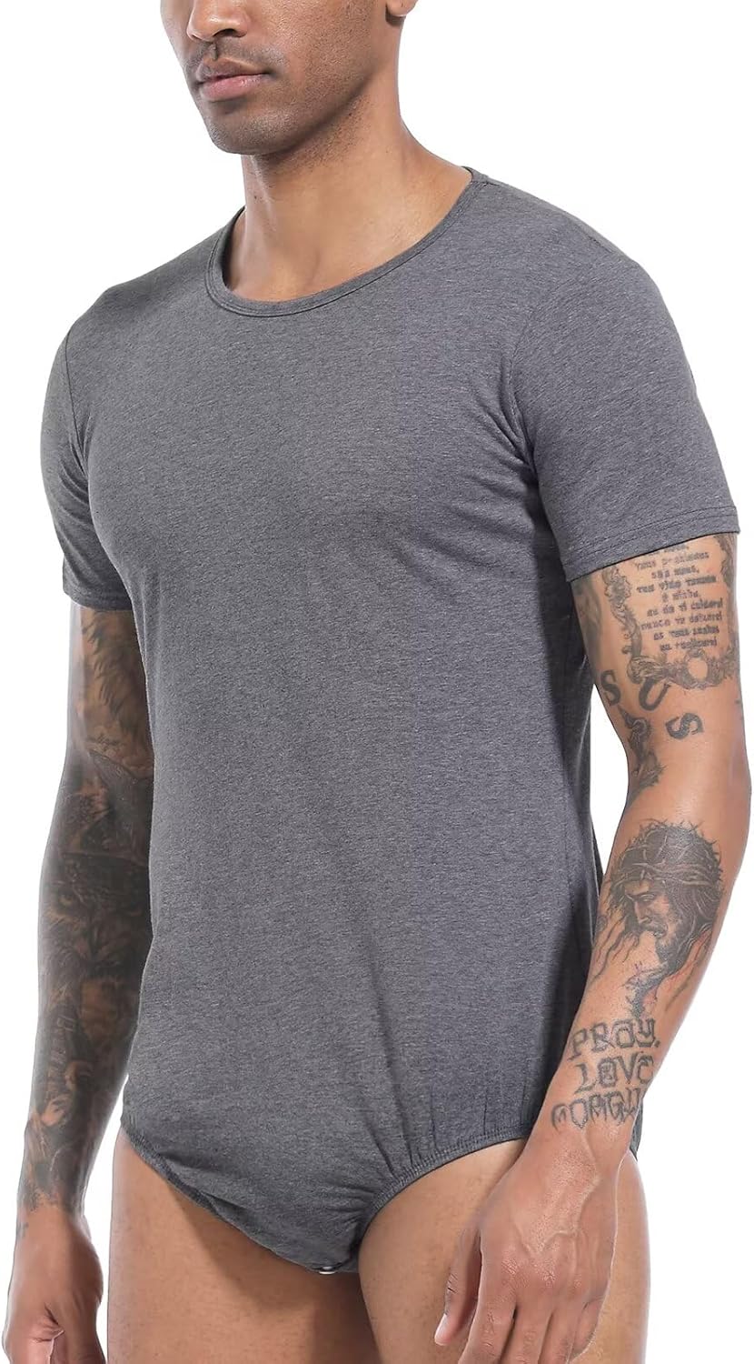 Landofgenie Männer Kurzarm Strampler Pyjama Bodysuit One Piece Strampler Grau XL, Grau XL