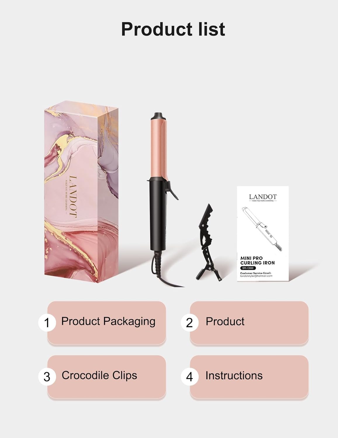 LANDOT Mini Lockenstab für kurze Haare, Lockenstab Kleine Locken 25mm mit Keramik-Turmalin-Beschicht