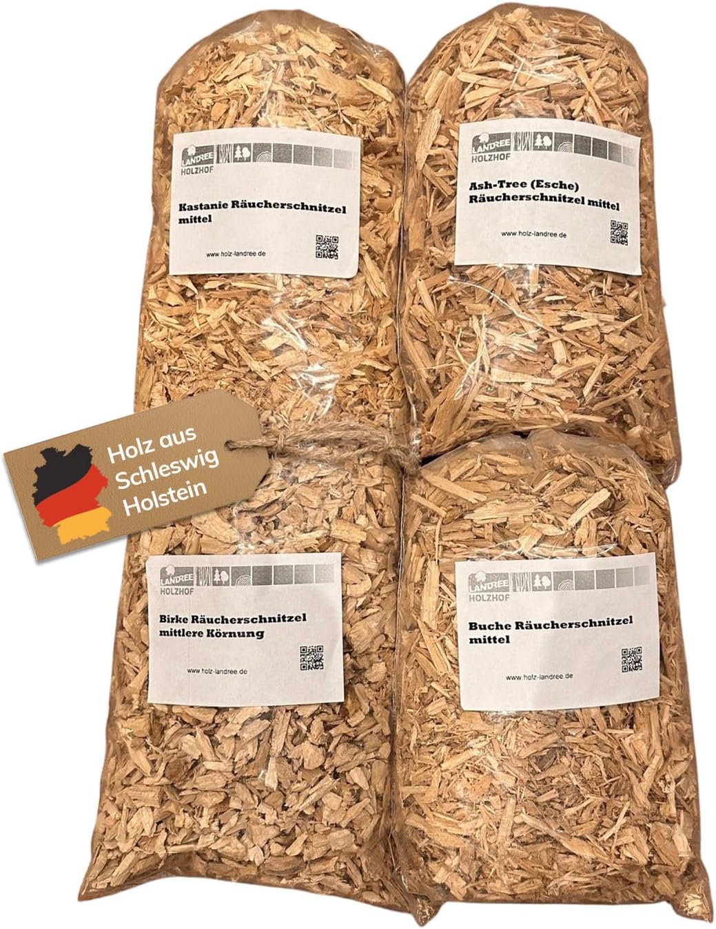 - Starter-Set „Geflügel & Fisch“ – 4 Sorten à 2 Liter: Esche, Kastanie, Birke & Buche. Fein abgestimmte Räucherholz-Mischung für zartes Fleisch & Fisch mit harmonischem, mildem Aroma.
