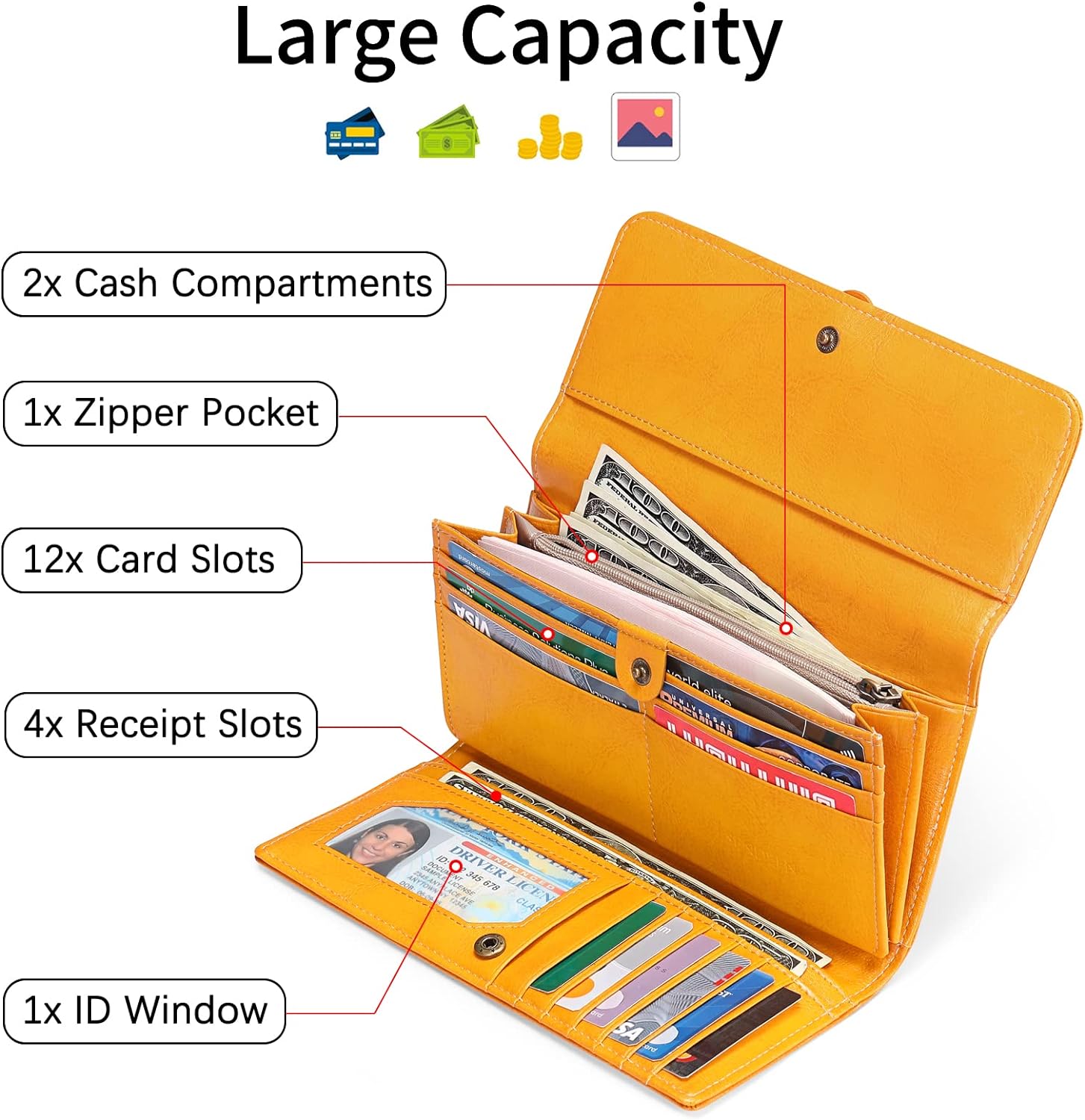 - Geräumig und Organisiert - Dieses damen portemonnaie gross wurde für moderne Frau entworfen und bietet viel Platz für all Ihre wichtigen Dinge. Viele fächer mit Reissverschlusstaschen und Kartenfächern, halten Sie Ihre Gegenstände geordnet und
