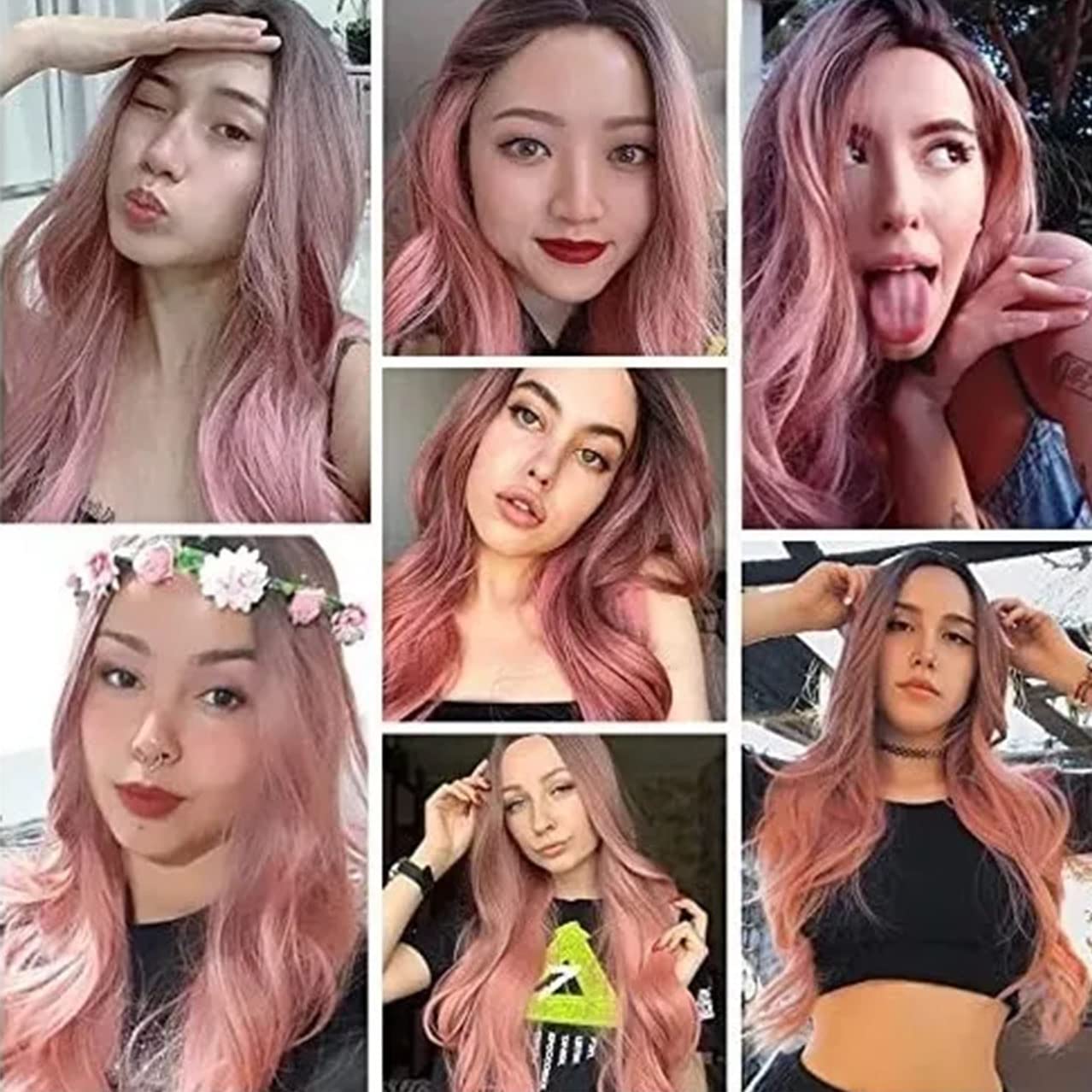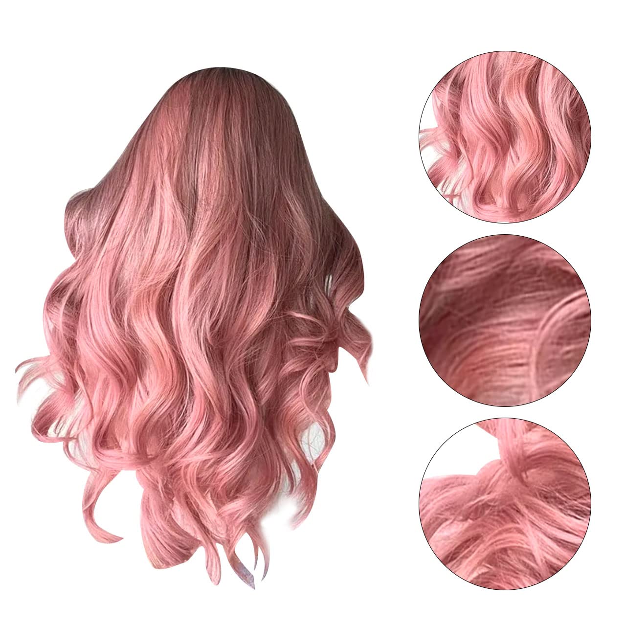 - Stilvolles Aussehen: Lange gewellte rosa Perücke, Mittelscheitel Design, zarte Farbe, insgesamt sieht modisch und exquisit aus, lässt Sie attraktiver aussehen.
