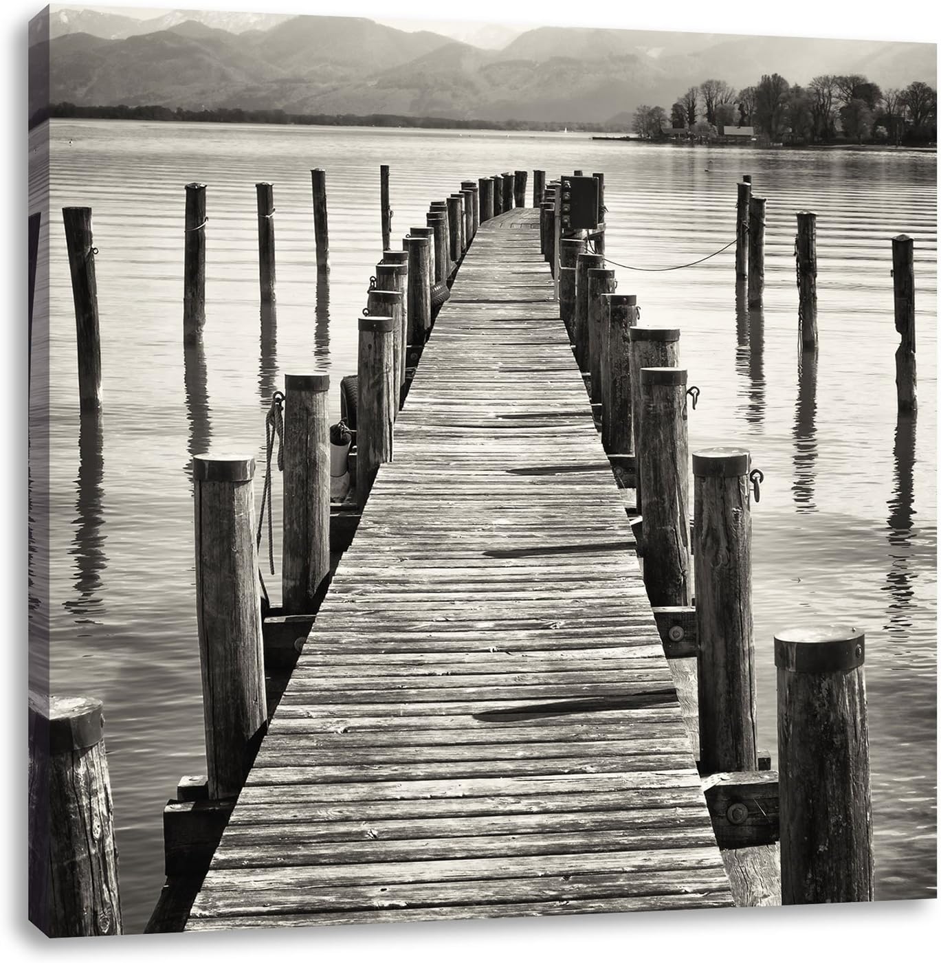 Langer Holzsteg ins Meer, Format: 70x70 auf Leinwand, XXL riesige Bilder fertig gerahmt mit Keilrahm