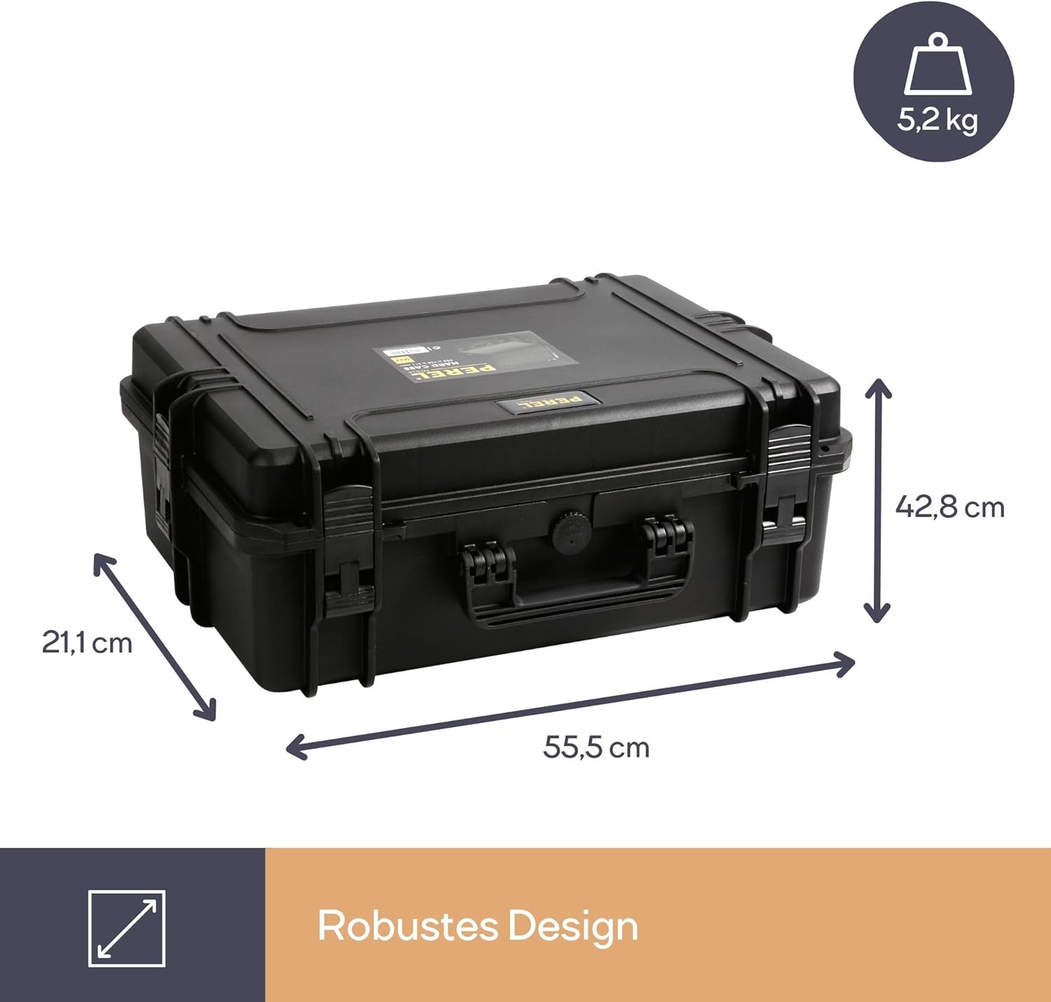 - Mit zwei einfach zu öffnenden Schnappverschlüssen.