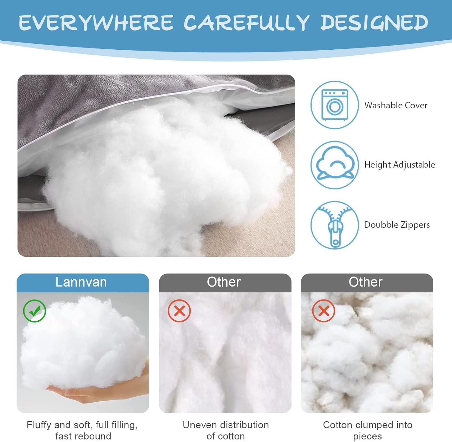 - ✔【Sorgfältig ausgewählte Materialien】Das Lannvan Stillkissen-Seitenschläferkissen ist aus hochwertigem Samt für Langlebigkeit gemacht. Lagerungskissen füllung (ohne Geruch) (3 kg) aus Polyester macht dieses Kissen gross und voll und garantiert