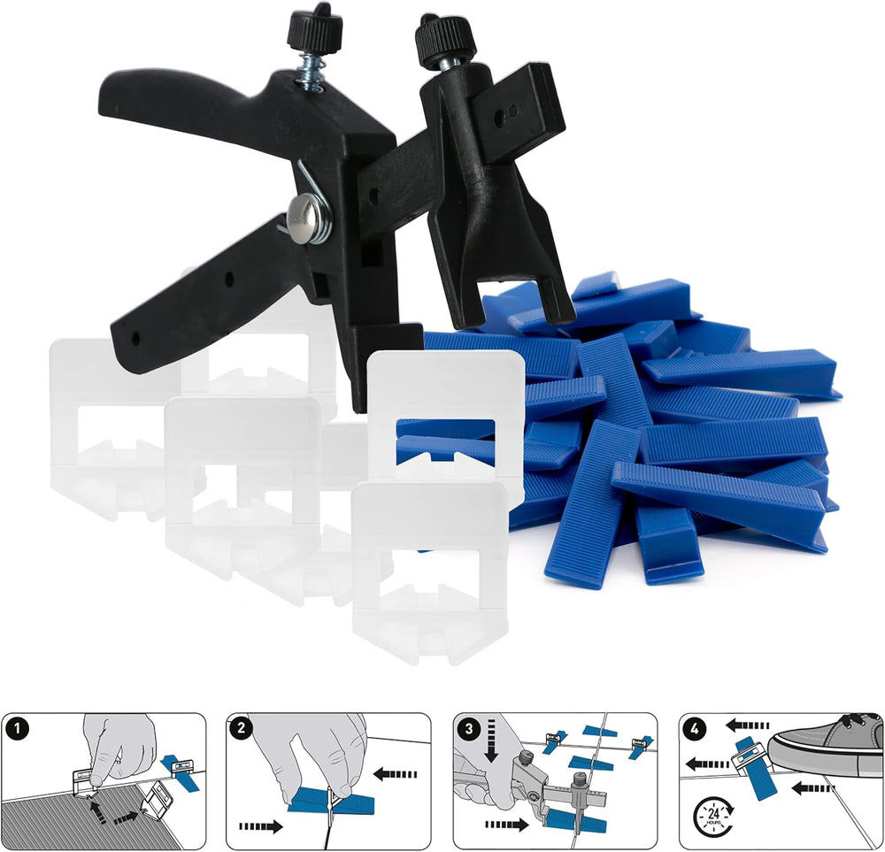 - Das Lantelme Fliesenverlegesystem im Set mit 1000 Stück XXL Zuglaschen für 3mm Fugenbreite