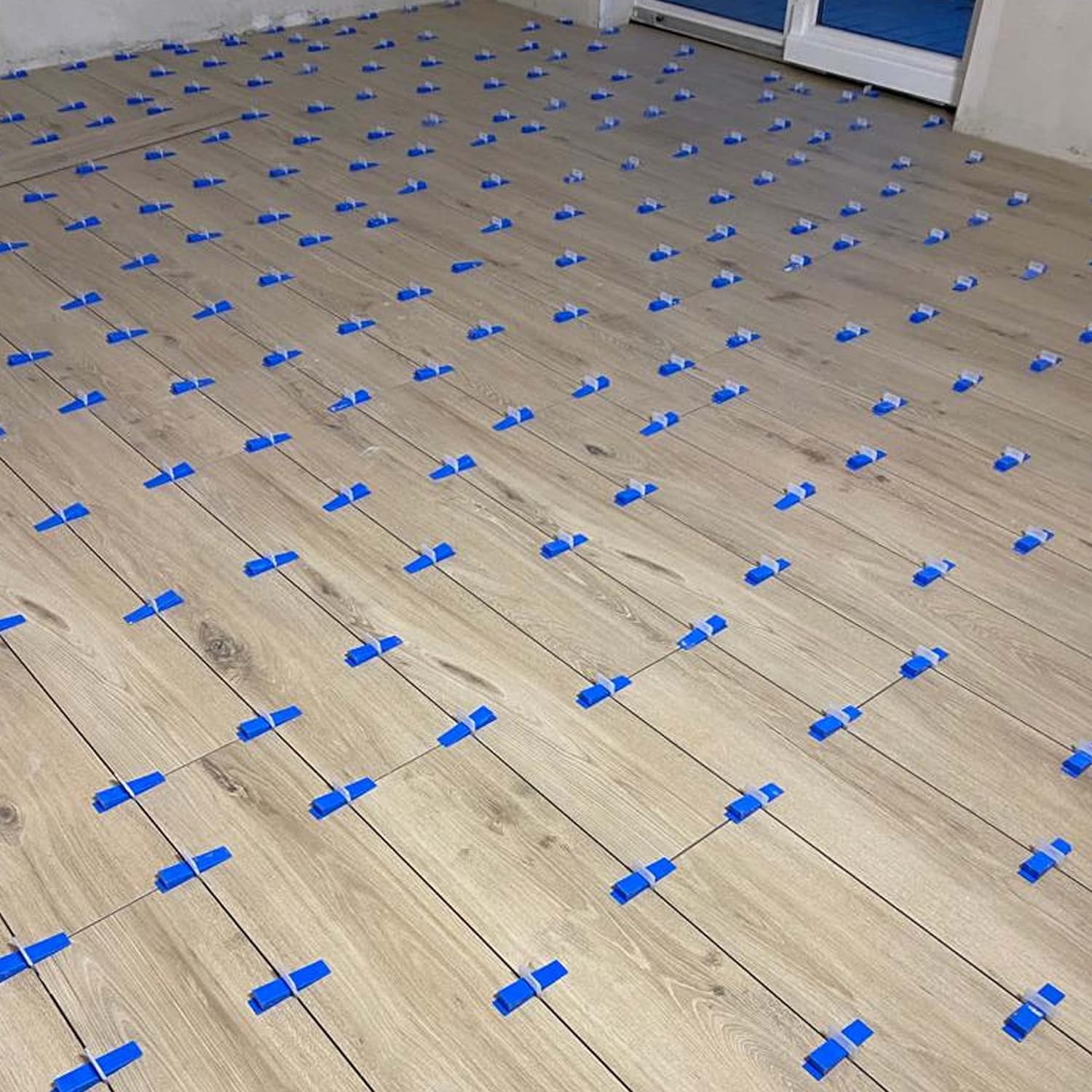 - Die Lantelme Fliesennivelliersystem im Set mit 500 Stück Zuglaschen für 1mm Fugenbreite.