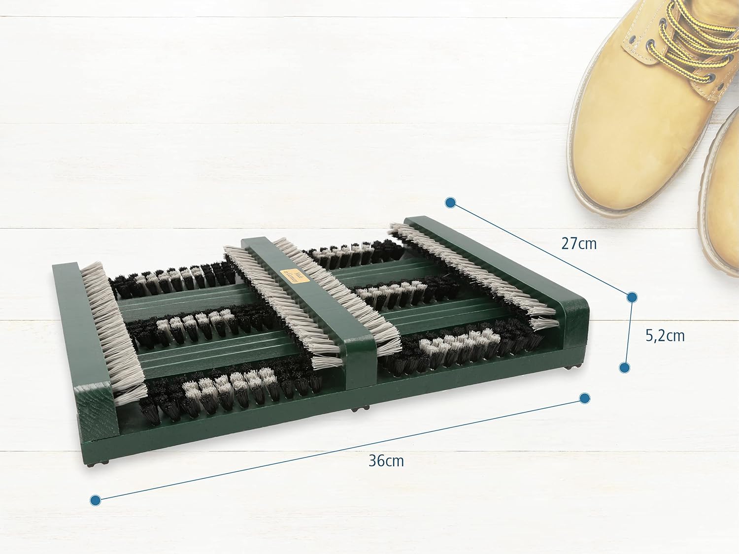 - Vielseitig verwendbar. Dieser Schuhabtreter ist für den Innen- als auch für den Aussenbereich geeignet. Die kräftigen Borsten entfernen effektiv Schmutz und Dreck von den Schuhen. Es ist die perfekte Ergänzung zu jedem Eingangsbereich.