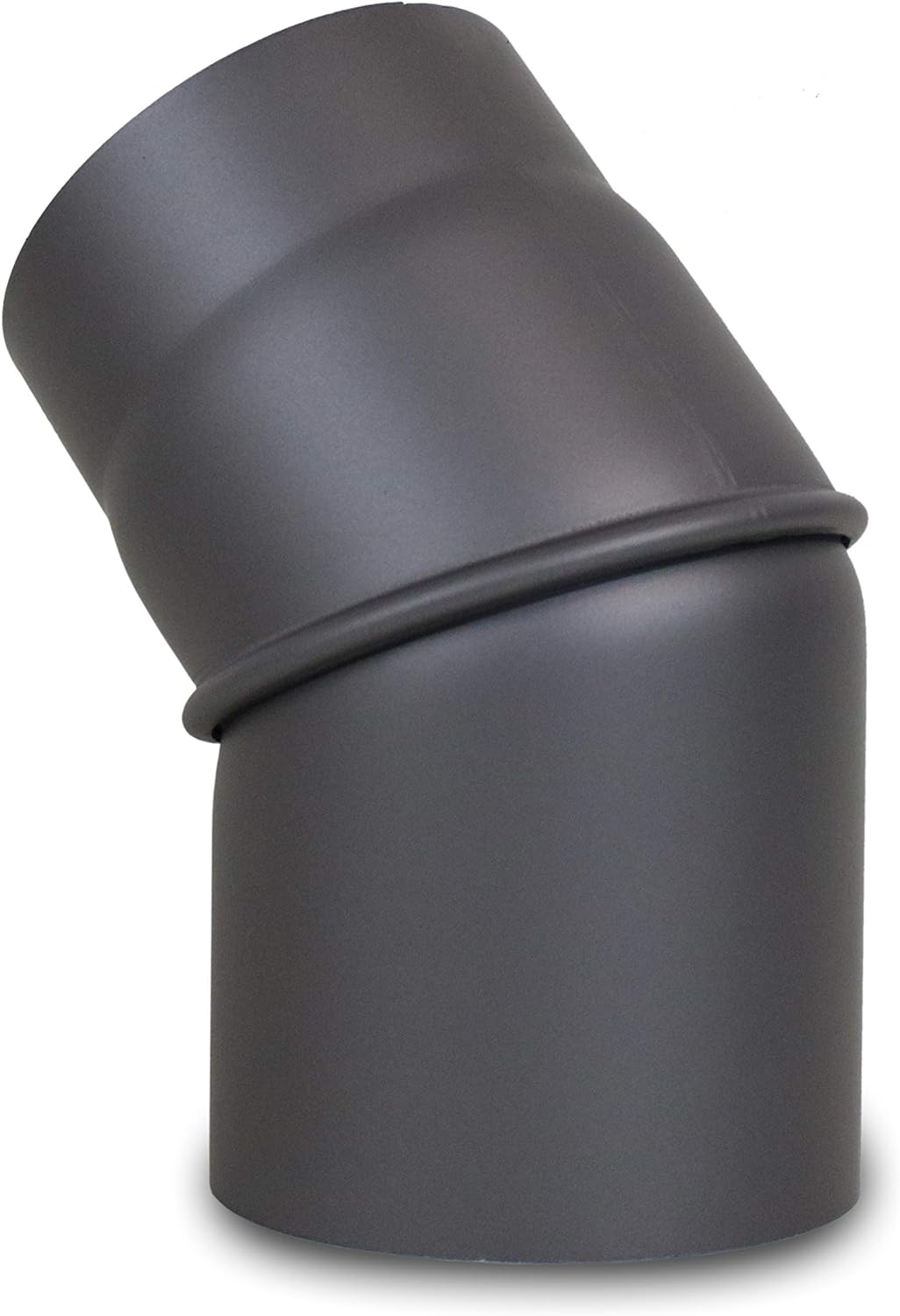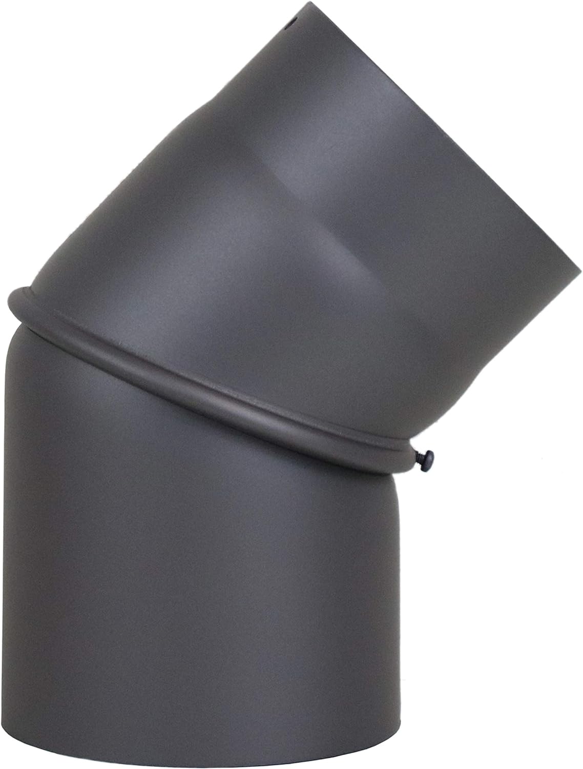 - Lieferumfang – Ofenrohr Bogen 0 - 45° Grad verstellbar, im Durchmesser 150 mm, Farbe: "gussgrau". Im Karton verpackt.