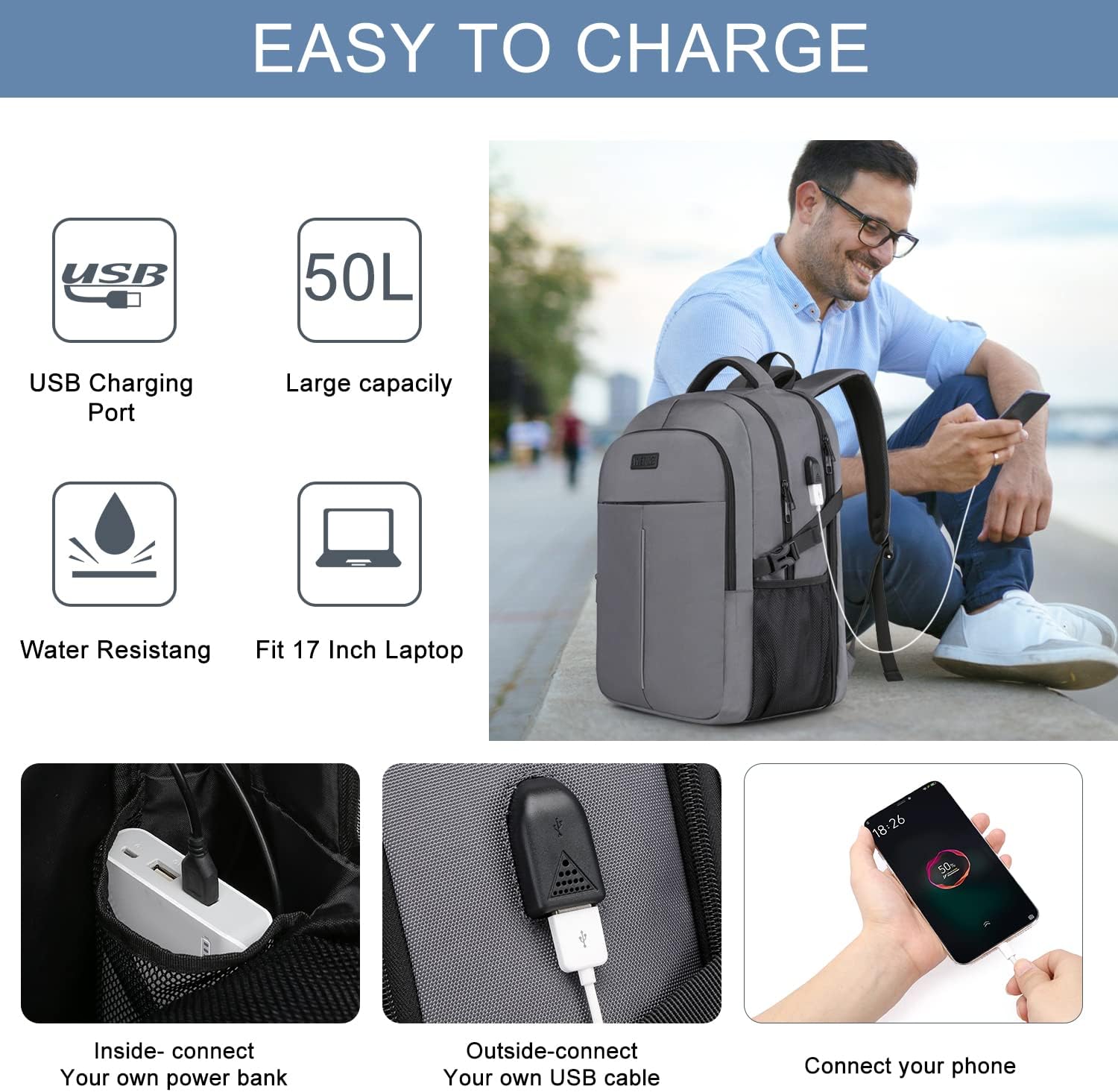- USB-LADEANSCHLUSS & DIEBSTAHLSICHERUNG & NACHTLICHTREFLEKTIEREND - Mit dem integrierten USB-Ladekabel bietet Ihnen der 17,3-Zoll-Laptop-Rucksack mit USB-Anschluss eine bequemere Möglichkeit, Ihr Telefon beim Gehen aufzuladen.Die versteckte Tasche des