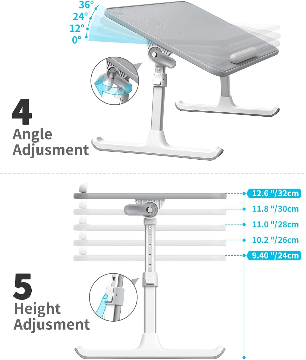 - ✨【verstellbare Winkel】: Der Laptoptisch für das Bett hat 4 Winkel (0 bis 36°) für ein komfortables Nutzungserlebnis. Er hat einen abnehmbaren Stopper, um zu verhindern, dass Ihr Laptop herunterfällt. Der Winkel kann leicht eingestellt werden, indem die Riegel an der Oberseite der Beine entriegelt werden.