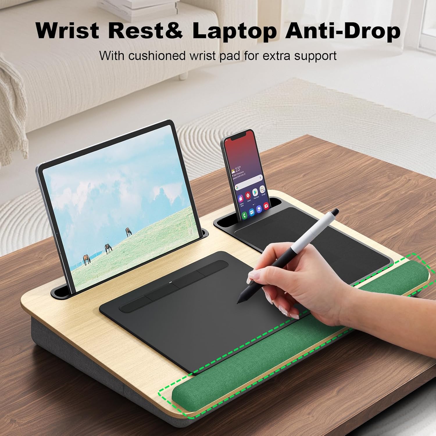 - Unsere Lap Desk für Laptop ist mit einer stabilen Plattform und einem gepolsterten Kissen ausgestattet, das sich Ihrem Schoss anpasst, um mehr Komfort und Stabilität zu bieten. Der Laptopständer für Sofa und Bett mit Kissen mit einem Griff