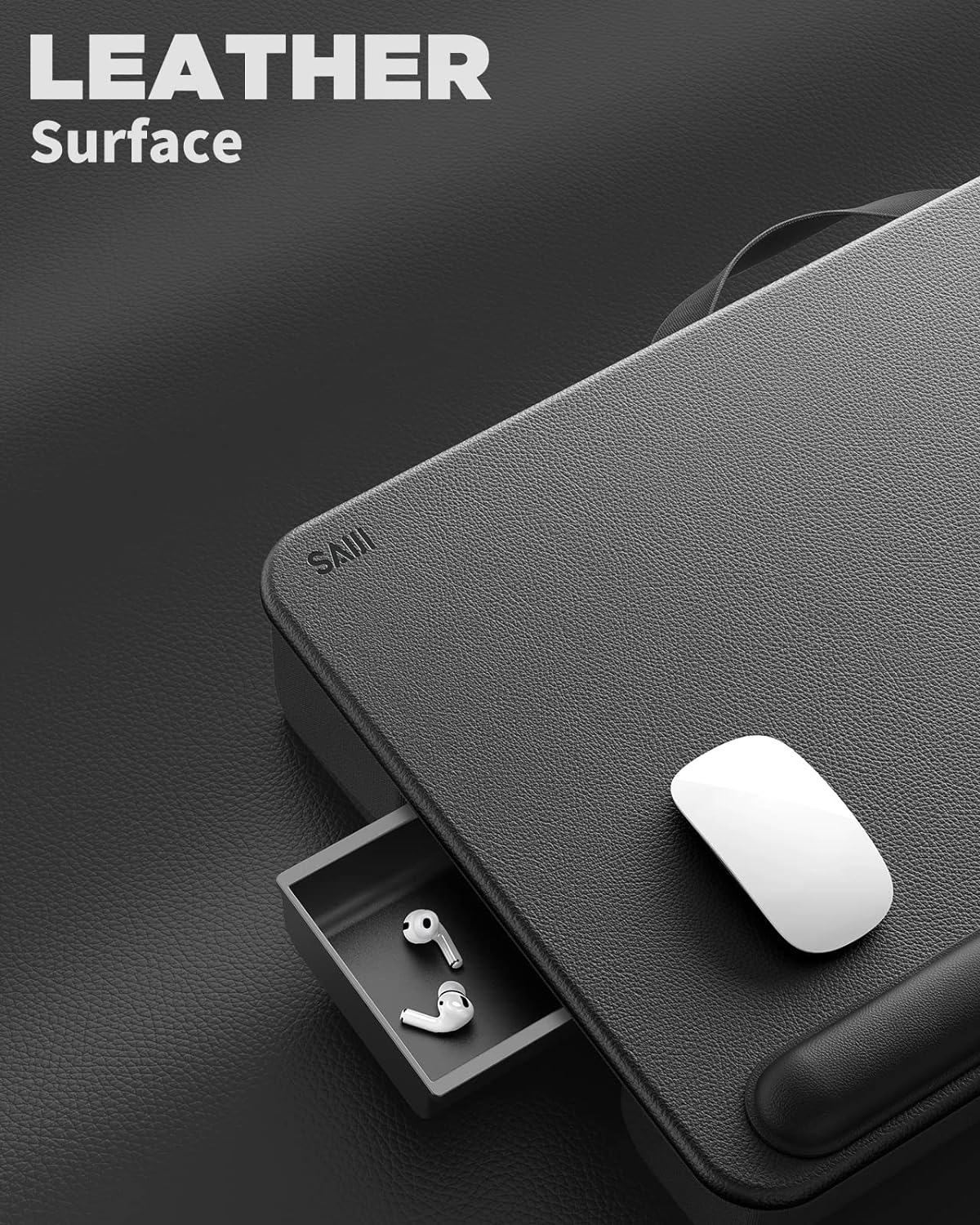 • ⏭️ 【Grosse Grösse】 Die Laptopunterlage hat eine Grösse von 54 x 33 cm und eignet sich für Laptops bis zu 17 Zoll. Es gibt genug Platz für die Navigation mit der Maus. Der Desktop ist aus rutschfestem Leder gefertigt, die Maus kann direkt