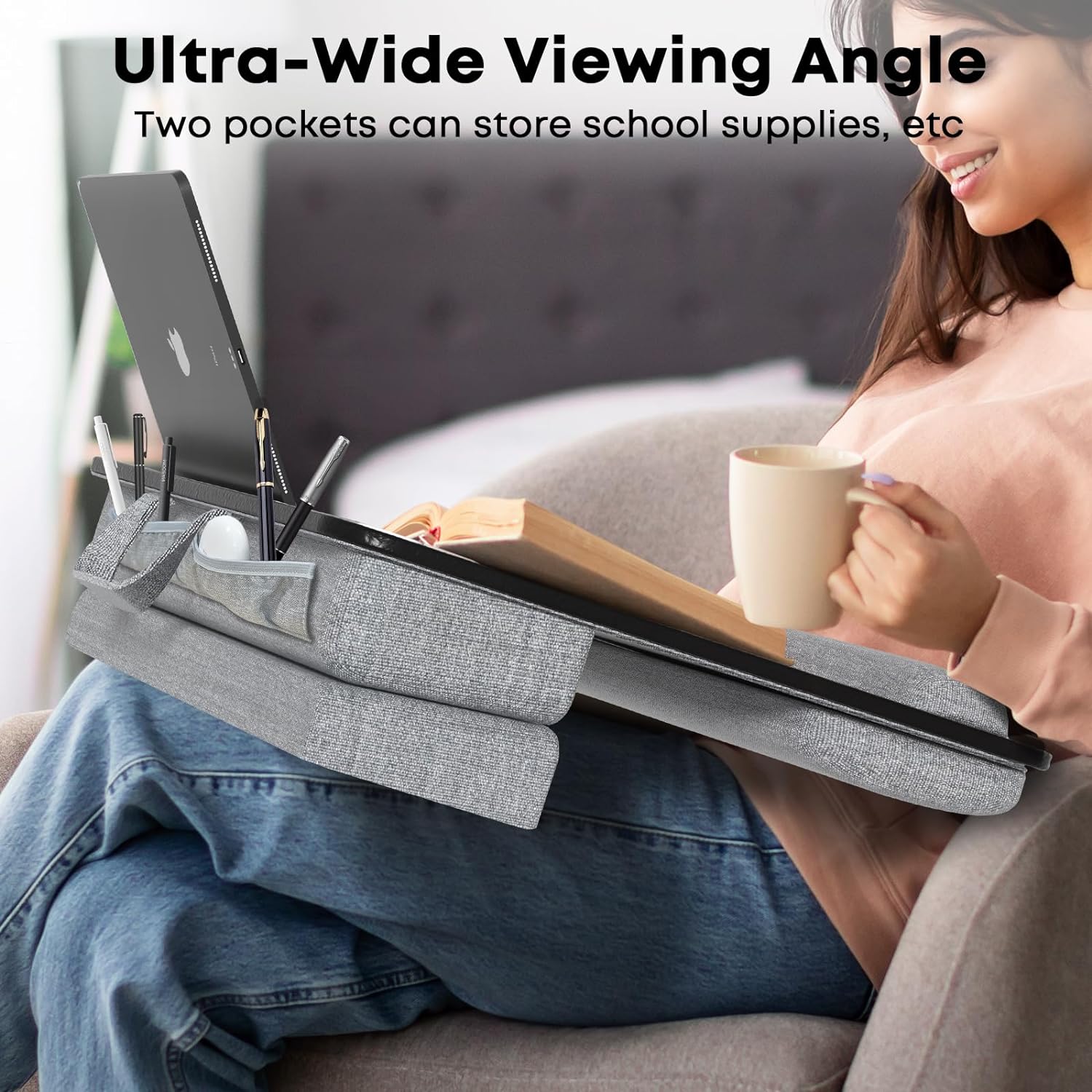 • 【Bequemes und Benutzerfreundliches Design】Das Laptopkissen verfügt über einen 30,5 cm langen und 13 cm breiten Schlitz für Mobiltelefone oder Tablets verschiedener Grössen, wobei die Schlitze für zusätzlichen Komfort geneigt werden können.