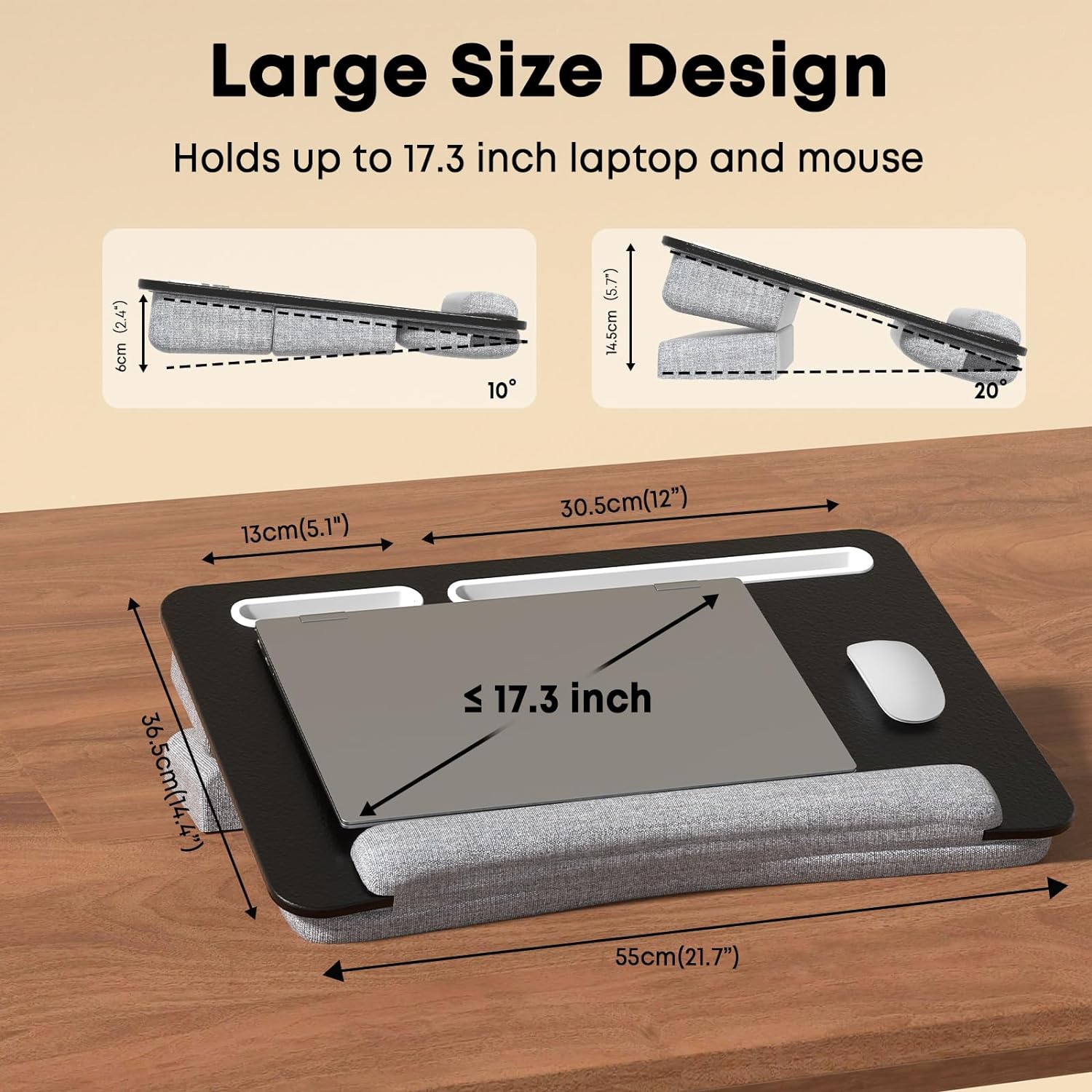 • 【Perfekte Grösse für Laptops und Einstellbare Höhe】Unser Laptopkissen ist 55x36,5cm gross und bietet Platz für Laptops bis zu einer Grösse von 17,3 Zoll. Das Laptopkissen kann zusammengeklappt und auf 14,5 cm Höhe eingestellt werden, um allen