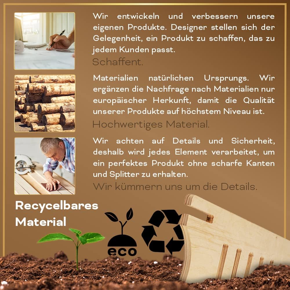 - Die Stehpulte bestehen aus einem langlebigen Material - Holzsperrholz, das sich durch eine hohe Widerstandsfähigkeit gegen Beschädigungen und eine gleichmässige Struktur auszeichnet. Das raffinierte Finish und die gefrästen Kanten des Ständers