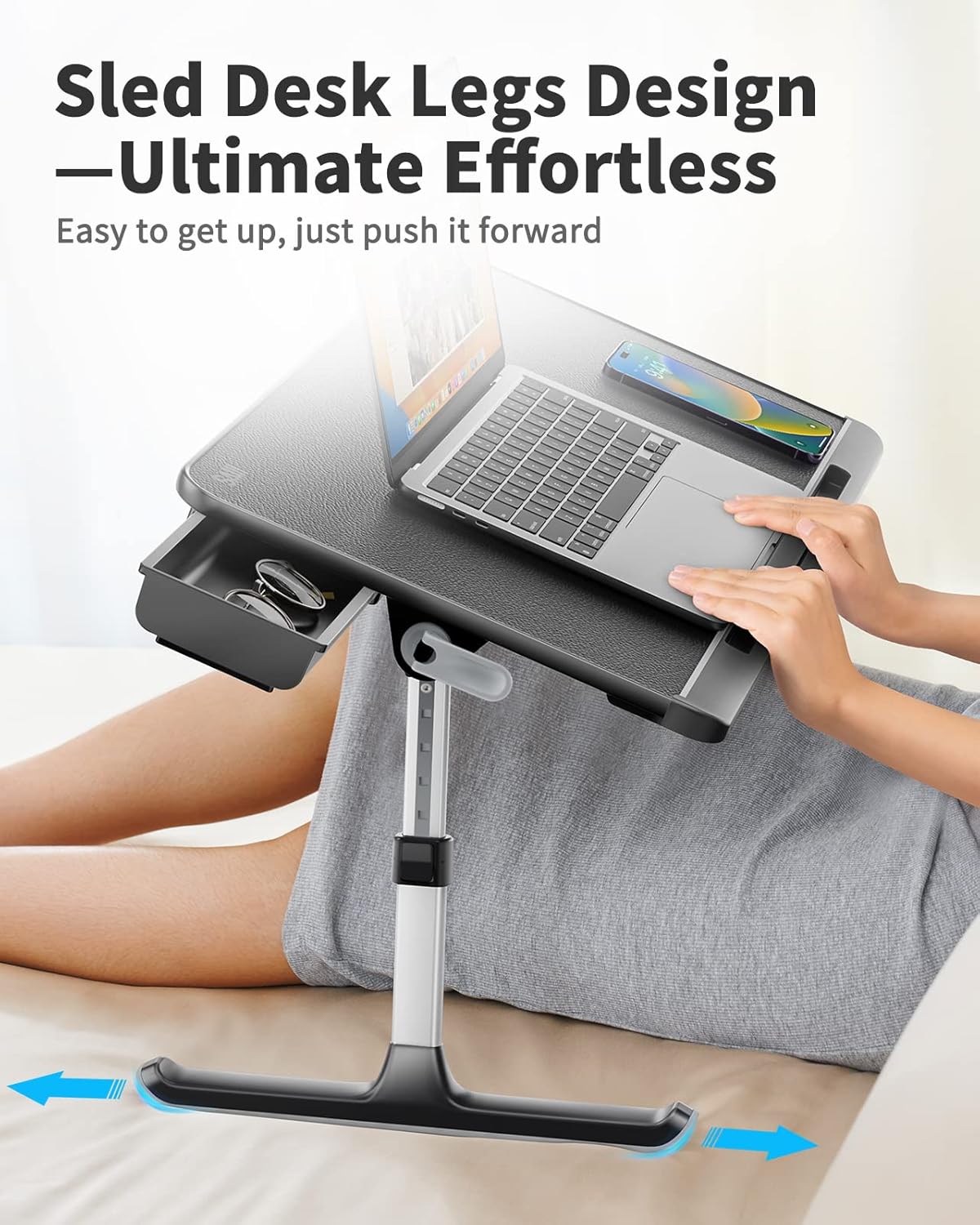 - ⏩【PVC-LEDER&Schublade】Der Schreibtisch des Laptop-Schreibtisches besteht aus umweltfreundlichen Materialien und hochdichtem PVC-Leder. Es hat einen beweglichen Stopper, um ein Herunterfallen des Laptops zu verhindern. Auf der linken Seite des Laptop-Betttabletts befindet sich eine kleine Schublade, in die Sie eine Maus, ein USB-Kabel, Klebeband, Stifte, Gläser und andere kleine Gegenstände stecken können.