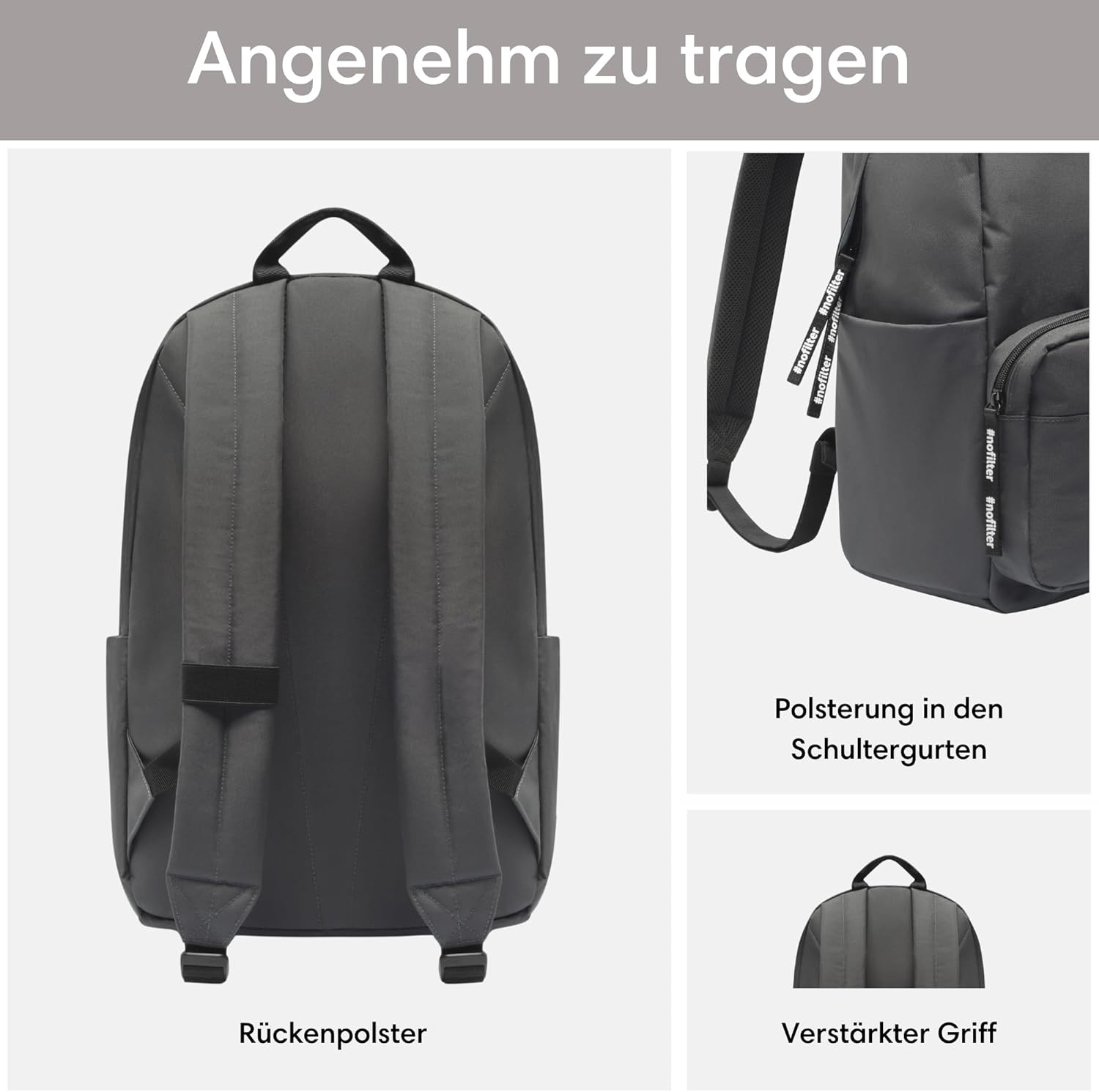 - NACHHALTIGES MATERIAL: Der Aussenstoff und das Innenfutter des Rucksacks sind aus recycelten Plastik-Flaschen hergestellt. Durch eine Imprägnierung ist der Stoff wasserabweisend.