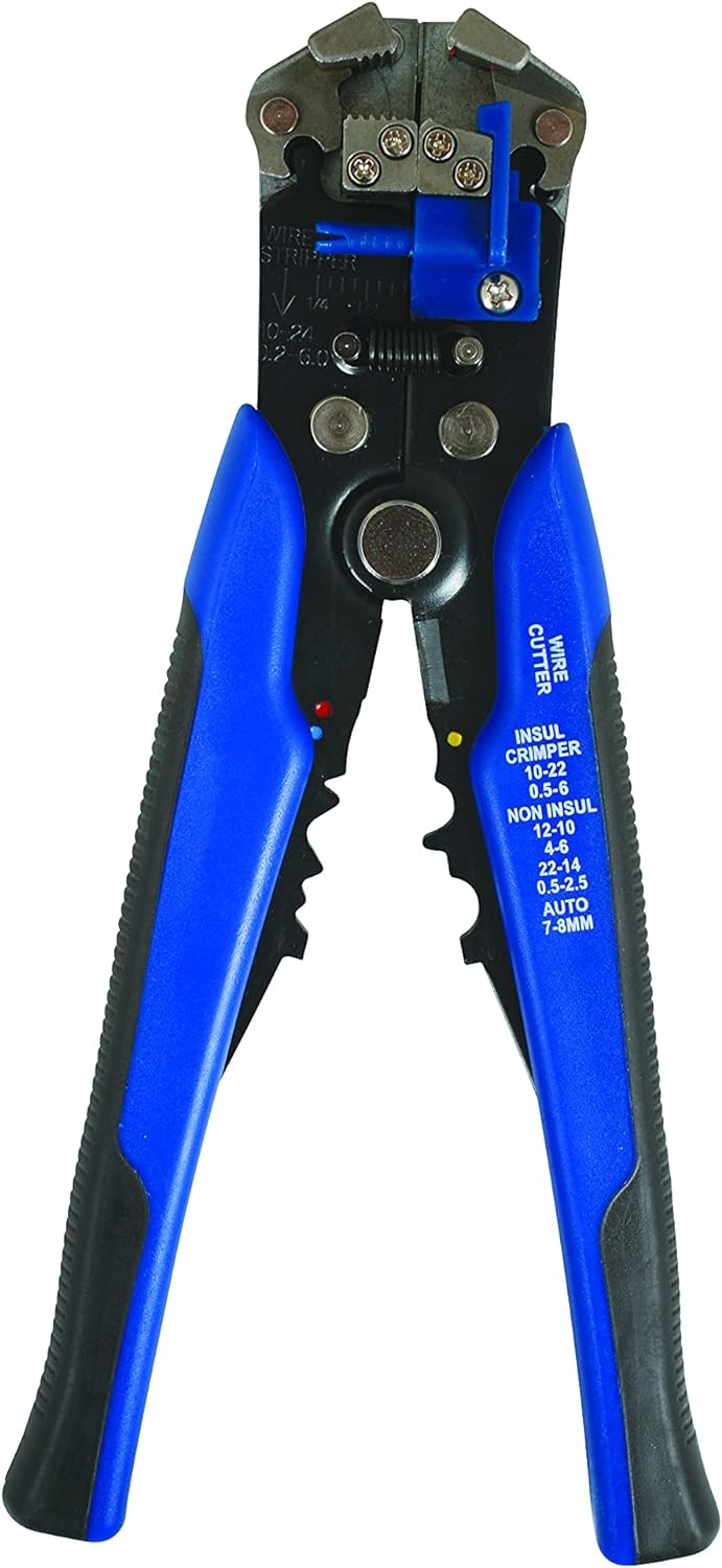 - 3-in-1-Werkzeug, mit automatischen Abstreifen-, Schnitt- und Crimpfunktionen.