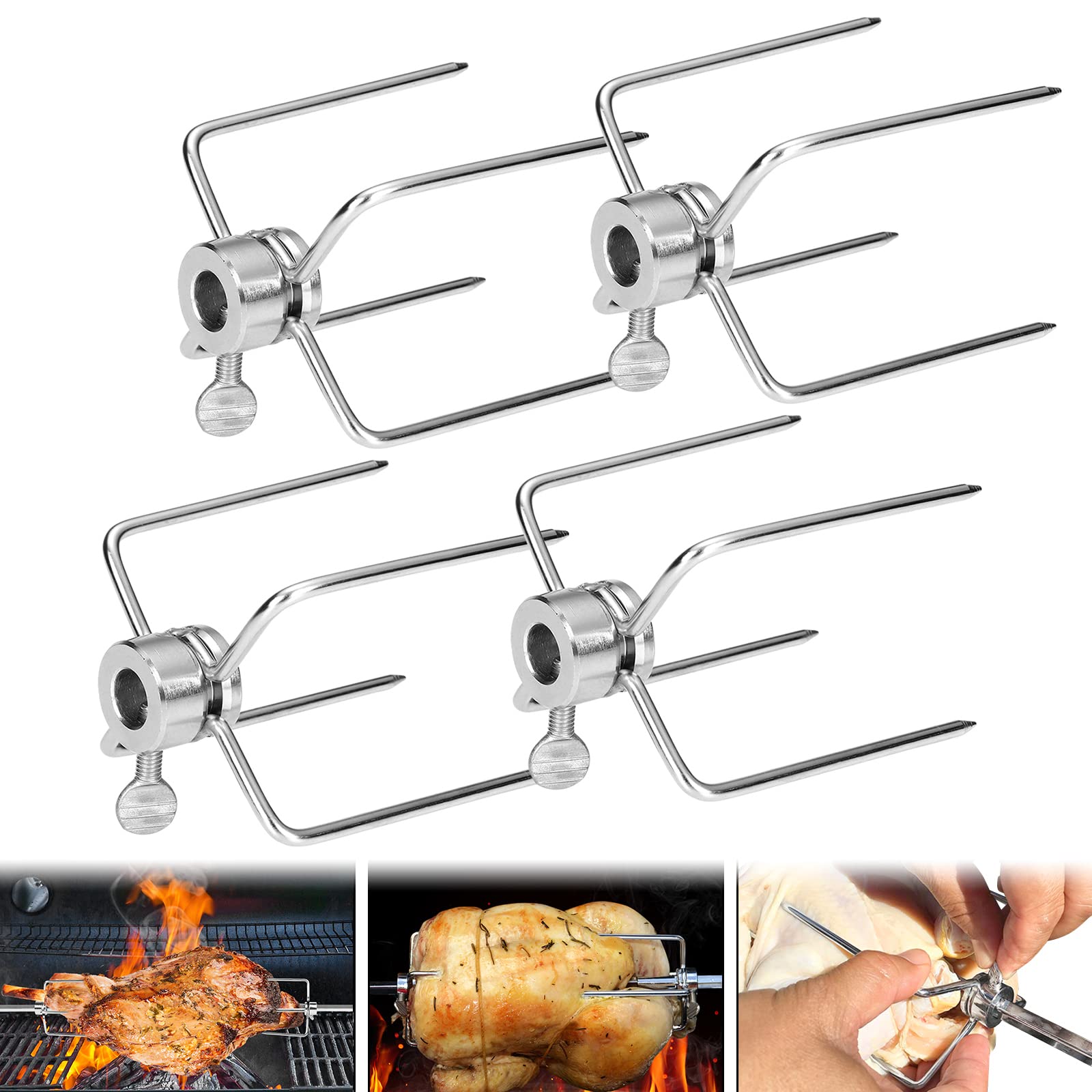 - 🍖Festerer Halt: Edelstahl Rotisserie für Grillspiess mit 4 Nadeln und Feststellschraube | Fleischklammern fixieren das Grillgut & verhindern, dass es sich auf dem Spiess dreht | 100% Grill Genuss