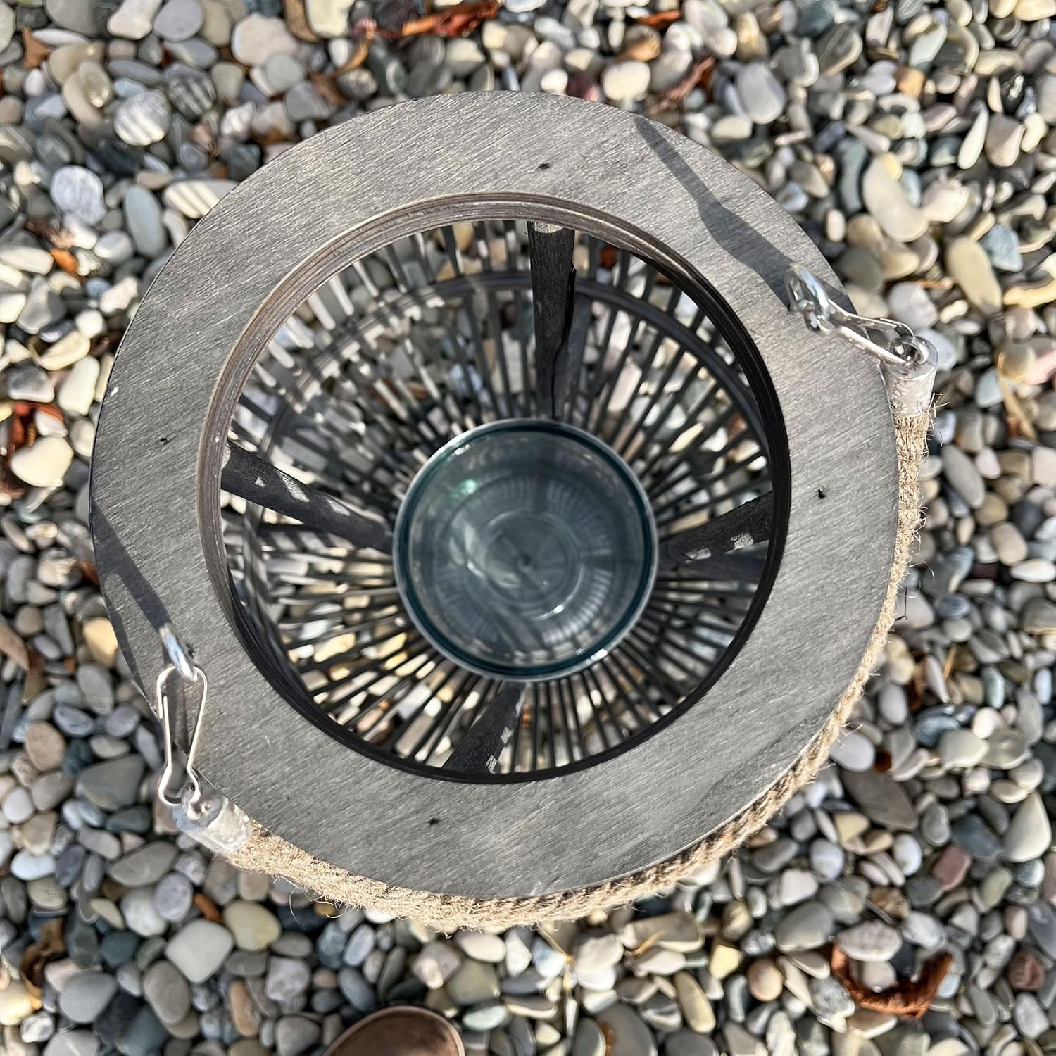 - Im Innern der Holzlaterne befindet sich ein Glaseinsatz für die Kerze