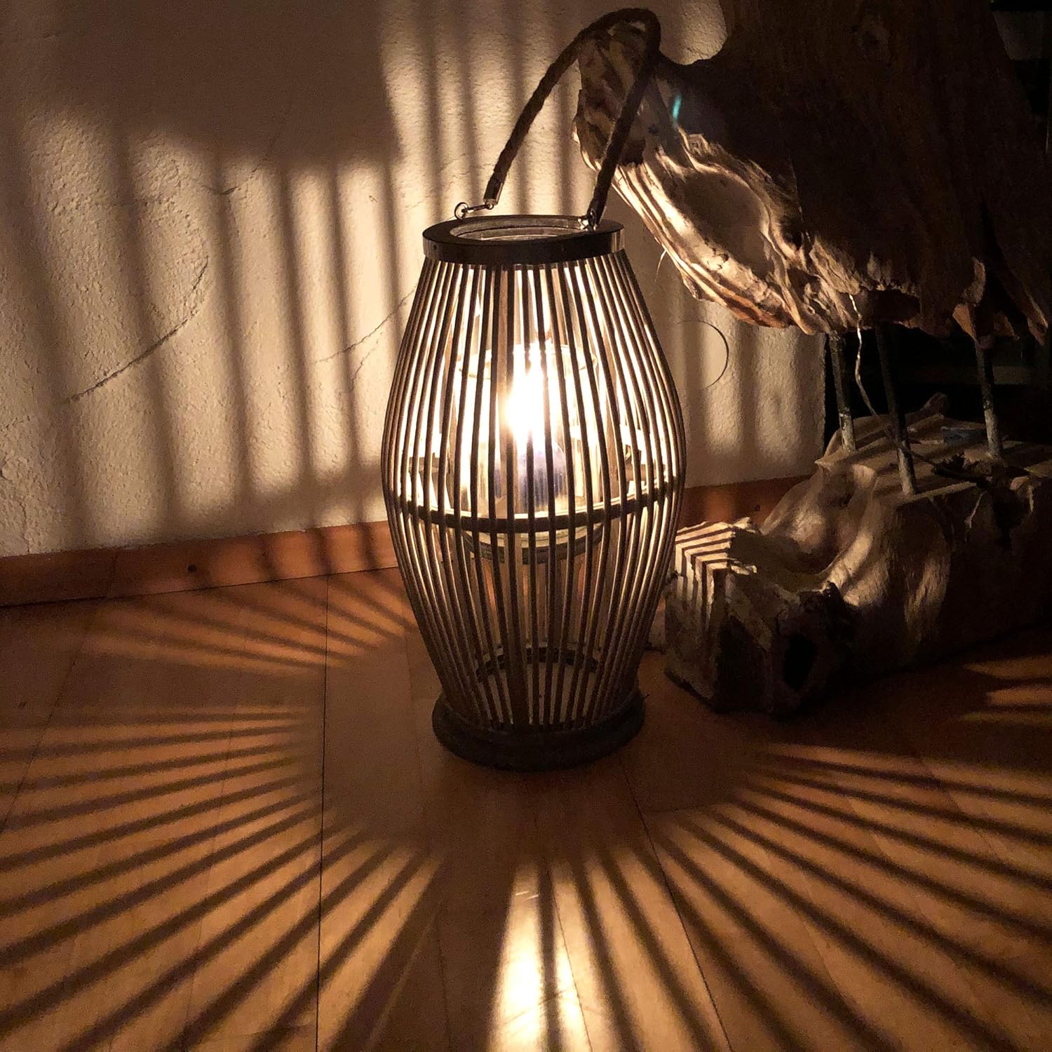 - Aussergewöhnliche Laterne aus Bambus mit Henkel in unverwechselbarer Optik
