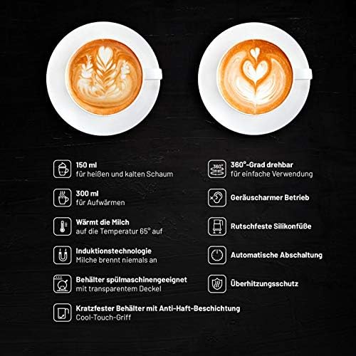 - KAPAZITÄT 150 ml/300 ml – 150ml: Ausreichendes Fassungsvermögen für das Aufwärmen von warmem oder kaltem Schaum. 300 ml: Fassungsvermögen für das Aufwärmen von Milch ohne Aufschäumen, z.B. für den Kinder-Kakao.