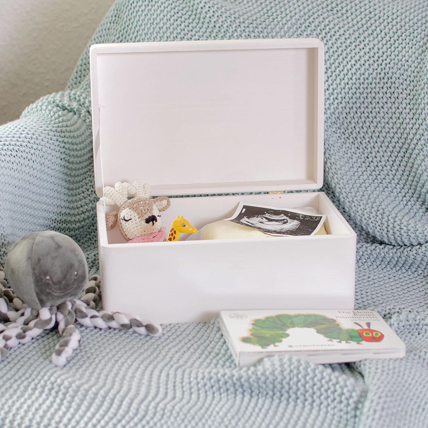 - STABILES NATURHOLZ: Weisse Holzschatulle aus FSC-zertifiziertem skandinavischem Kiefernholz. Die Vintage Holztruhe mit stabilem Deckel aus Vollholz ist ein treuer Begleiter über Jahre und Jahrzehnte