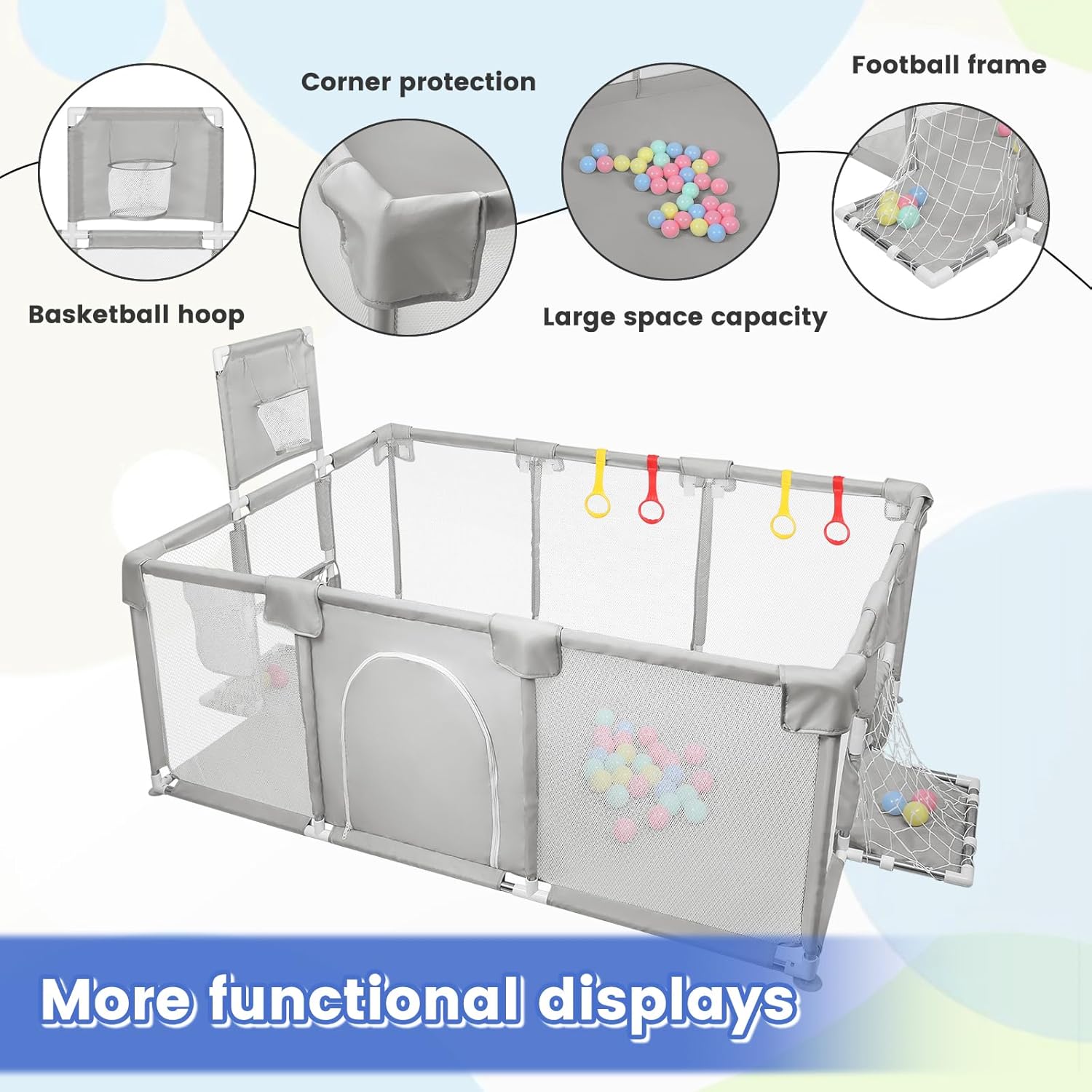 - 【Neues Upgrade】- Durch den Austausch der rutschfesten Saugnäpfe durch robuste Saugnäpfe wird der Laufstall sicher auf einem Boden aus verschiedenen Materialien befestigt. Der verstärkte Stoff widersteht äusseren Verformungen. So kann Ihr Baby