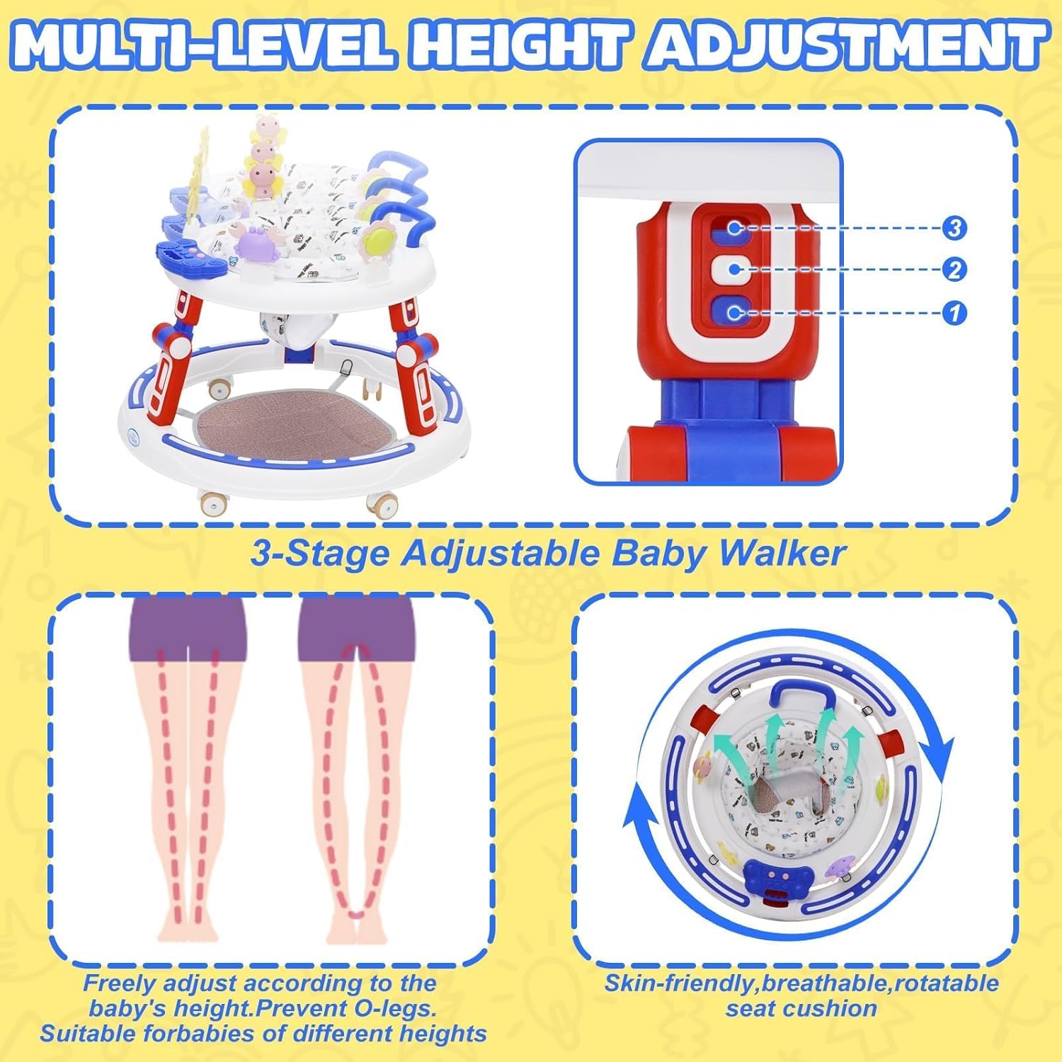 - 【Multifunktionaler Lauflernwagen】Dieser Lauflernwagen verfügt über mehrere Modi und eignet sich für Babys in verschiedenen Entwicklungsstadien. Wenn Sie die Fussstütze entfernen, kann Ihr Baby frei laufen lernen. Ausserdem gibt es Musikspielzeug