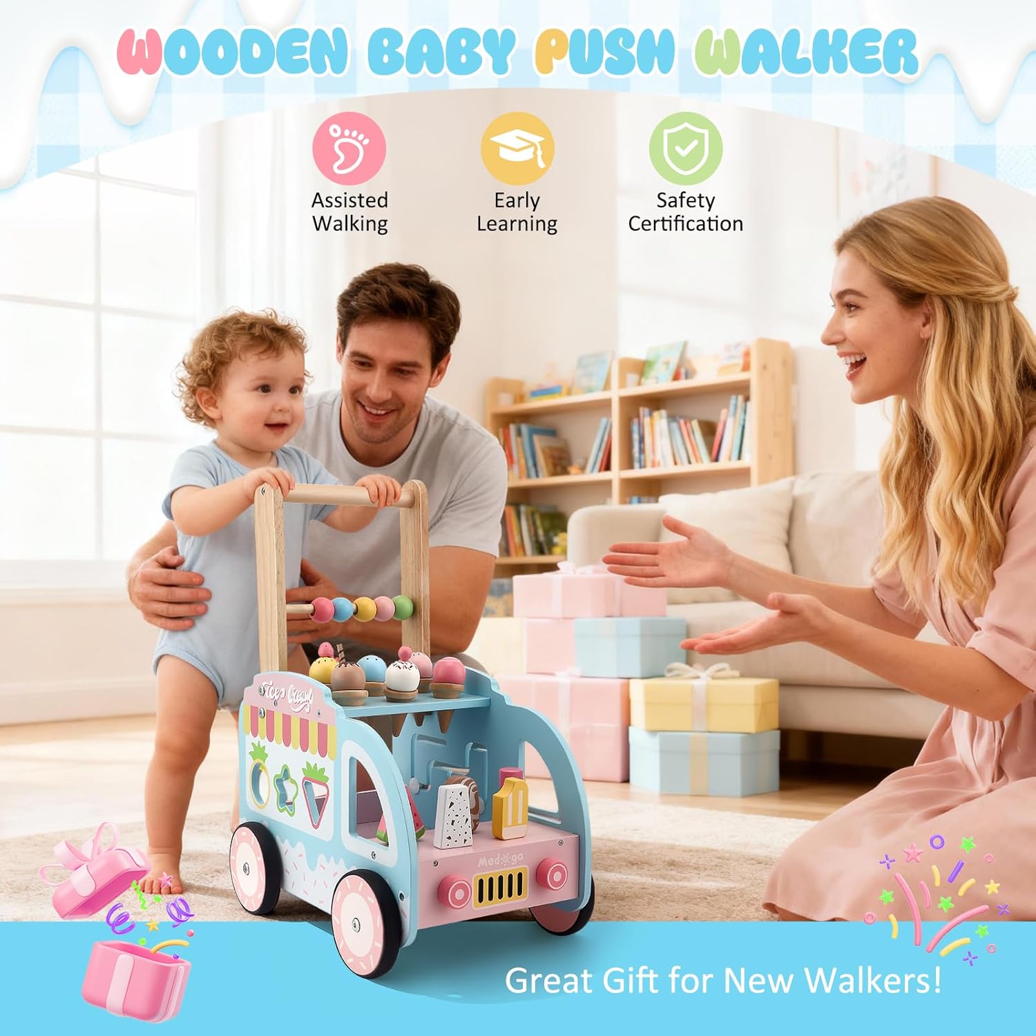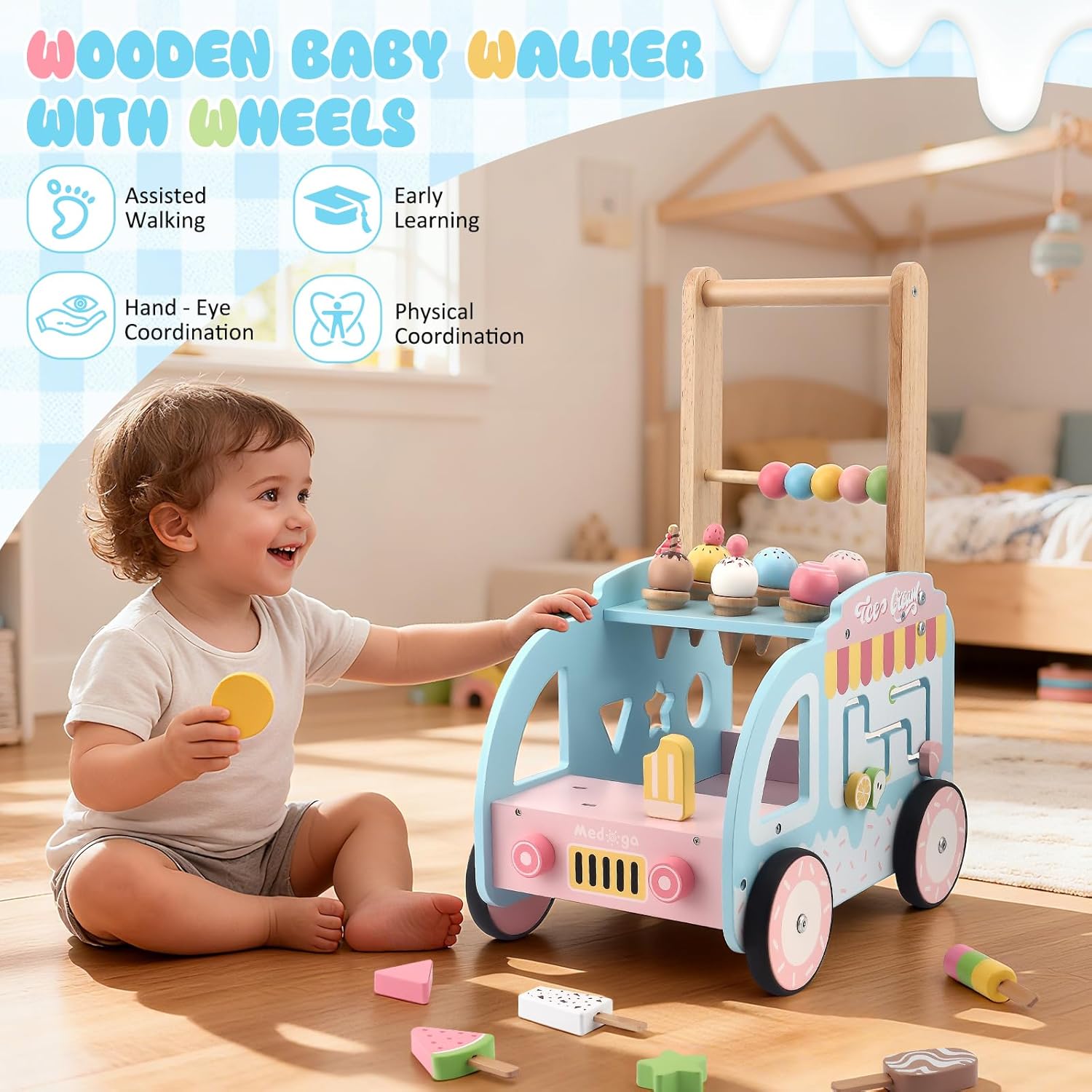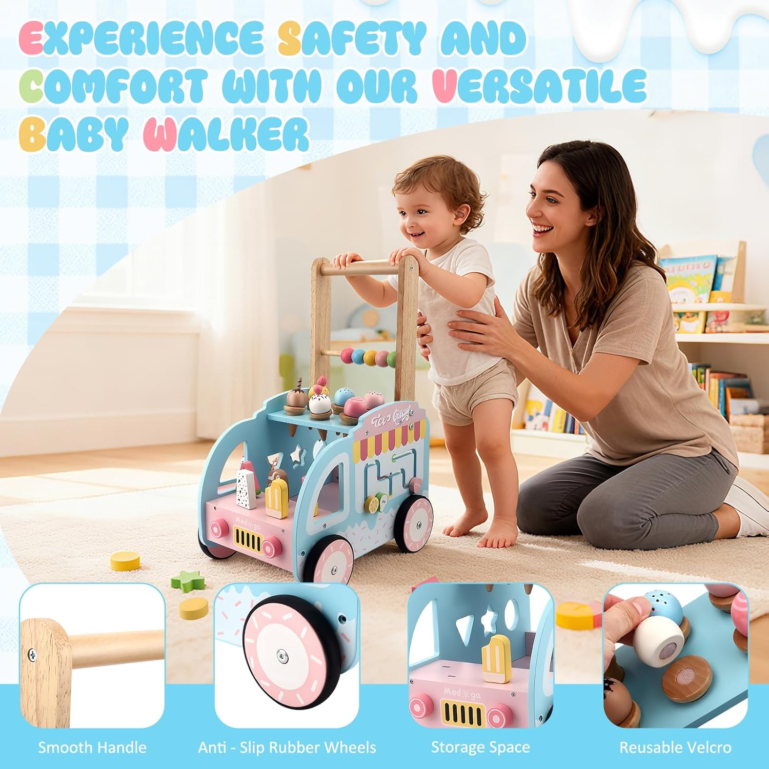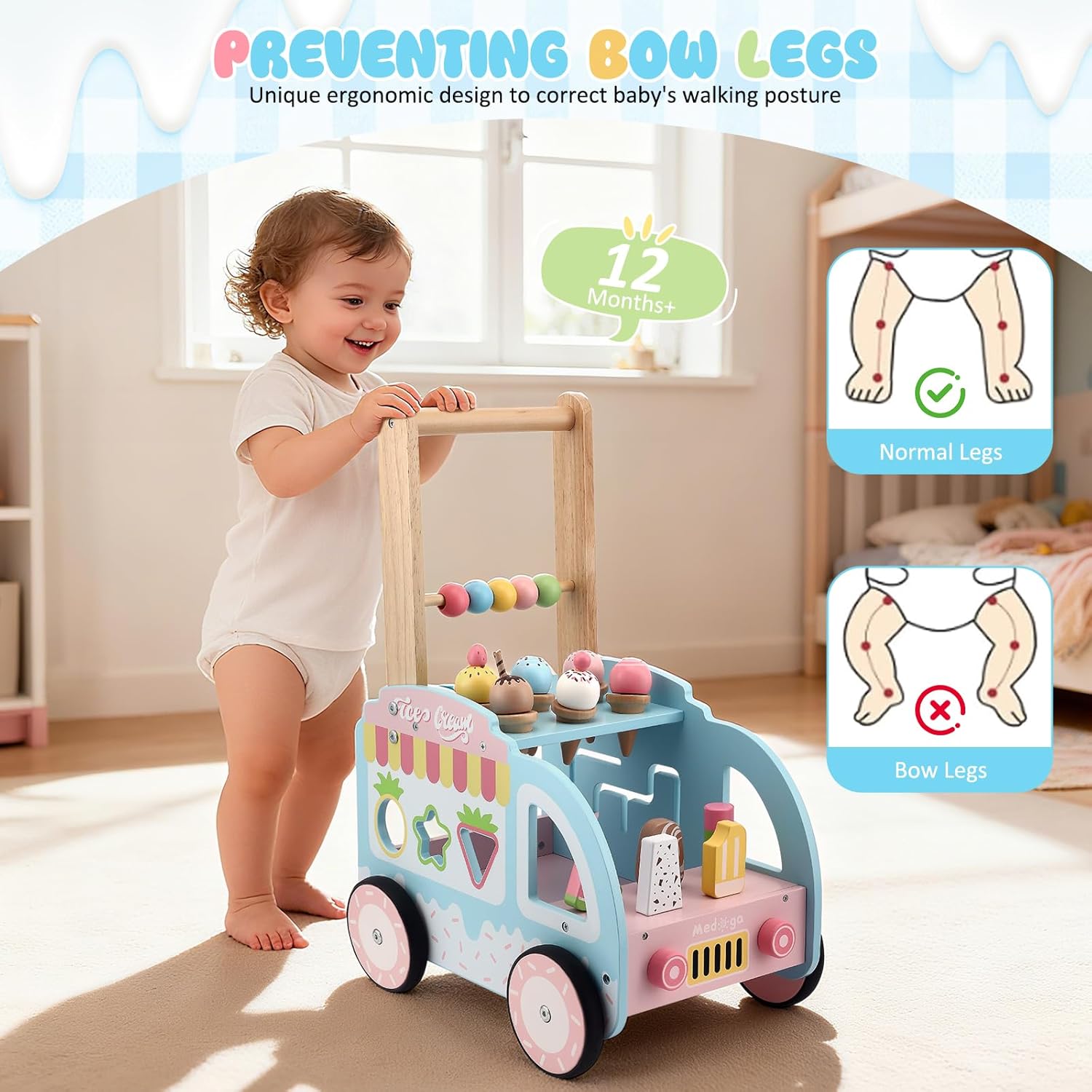 - 【🎯 Pädagogisches Montessori Spielzeug】Dieser Lauflernwagen Baby vereint Motoriktraining und Rollenspiel in einem. Mit 6 Eiscreme-Tüten, 5 Eisamstielen und einem Verkaufsstand fördert das Montessori Spielzeug die Kreativität, Feinmotorik und