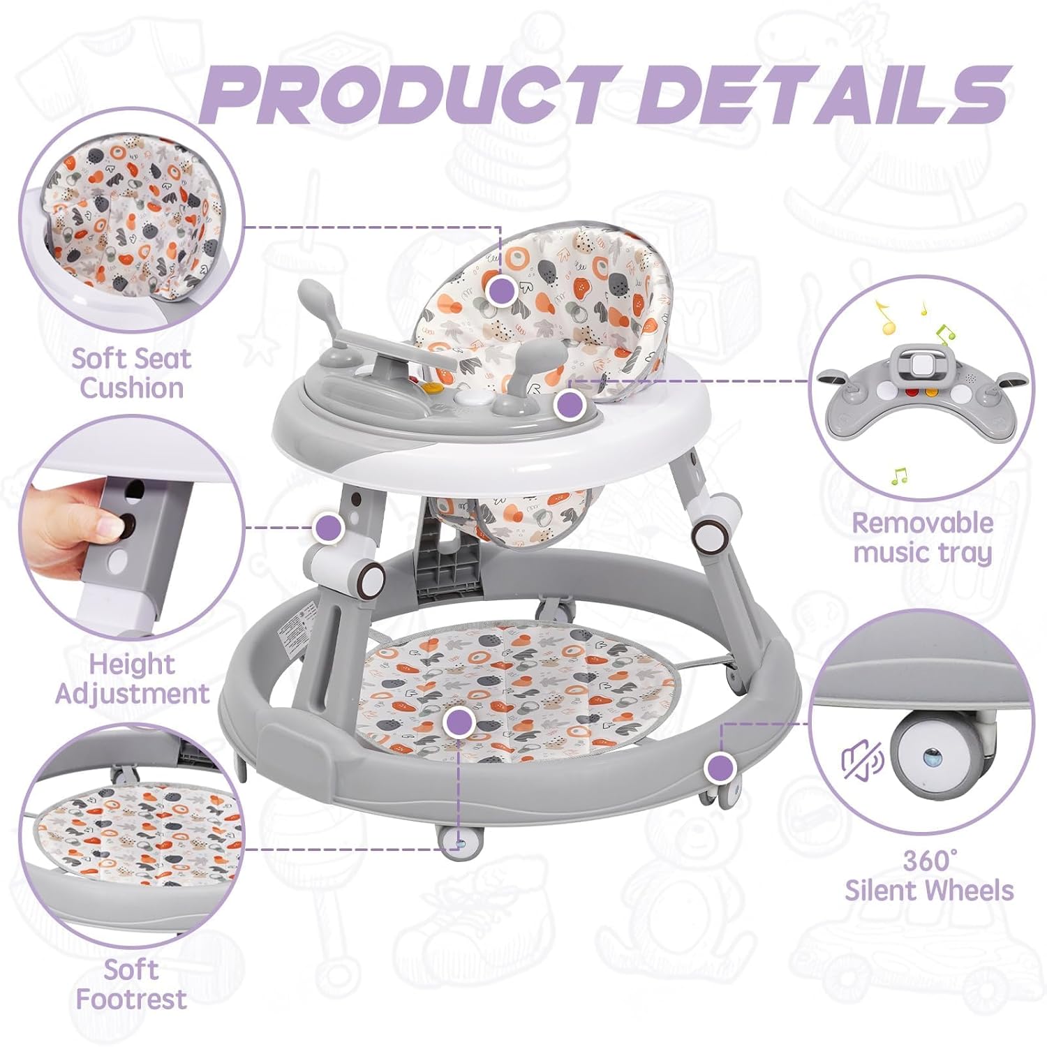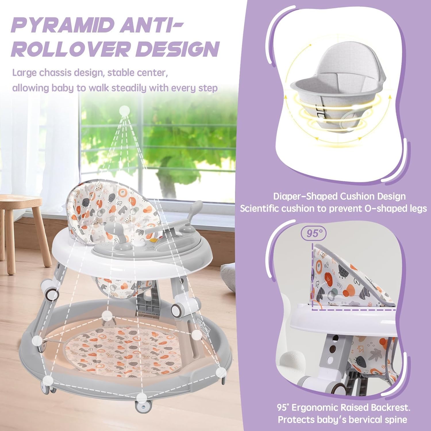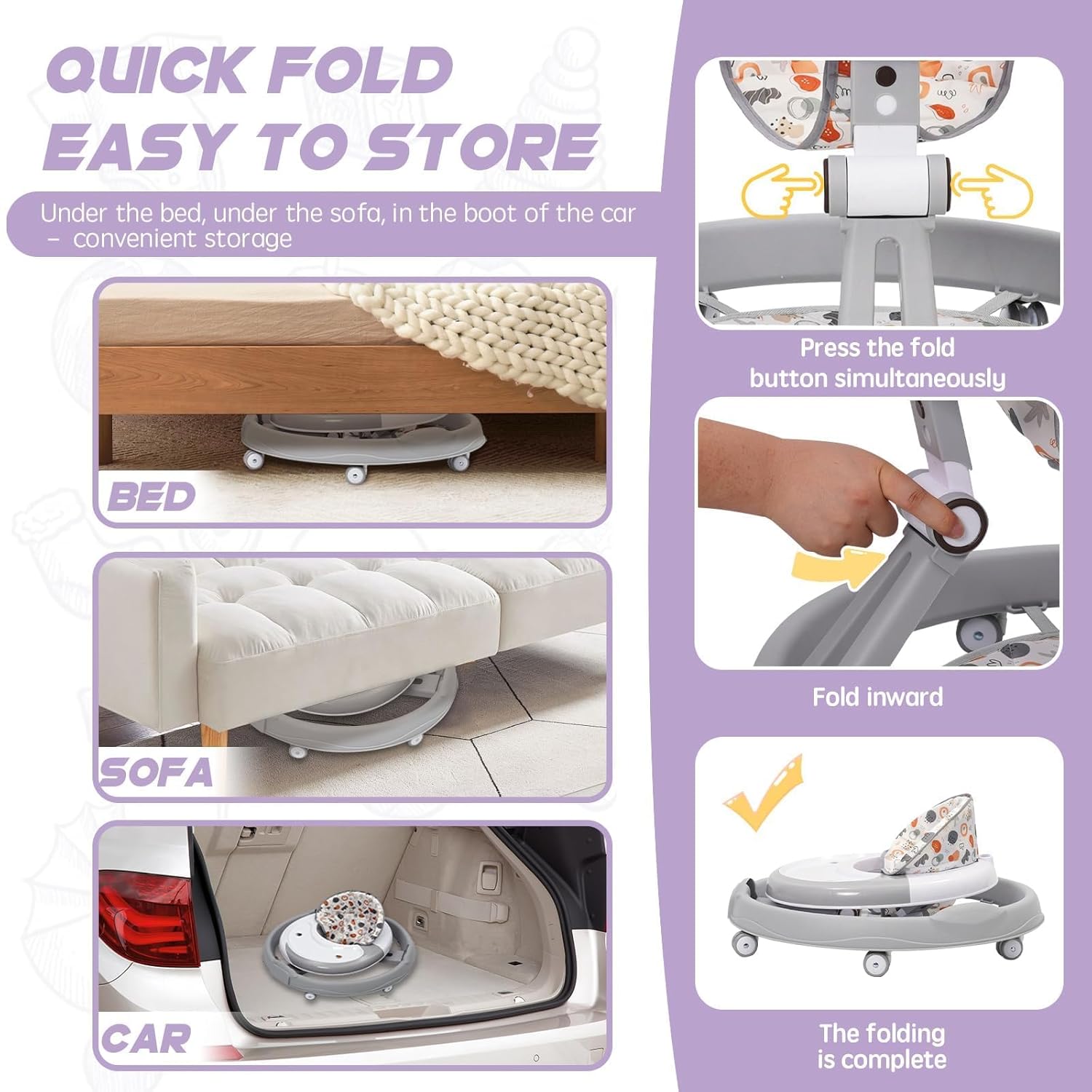 - 【Tragbares Design】Der Lauflernwagen lässt sich mit einem Knopf zusammenklappen (drücken Sie den Klappknopf und drücken Sie gleichzeitig auf den Körper, um ihn zusammenzuklappen) und kann unter dem Bett, unter dem Sofa, im Kofferraum des Autos