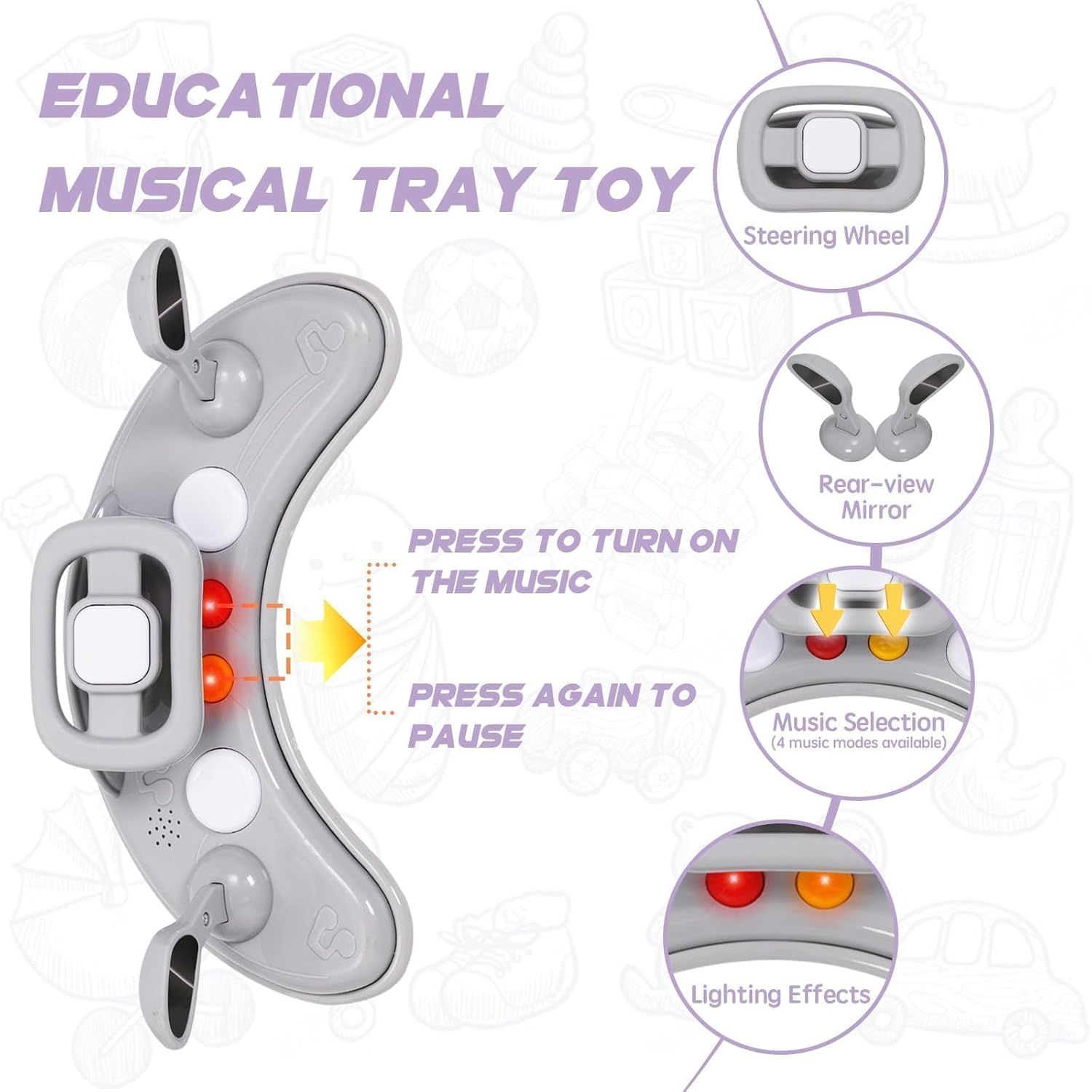 - 【Abnehmbares Spielpanel】Das abnehmbare Panel mit Lenkrad und Rückspiegel kann das Autofahren simulieren, damit das Baby spielen und lernen kann. Das Spielpanel verfügt ausserdem über verschiedene Musikstücke, die durch einmaliges Drücken der